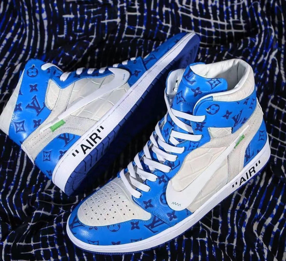 Beautiful Vintage Blue Embossed LV Suede for Custom Sofa Furniture