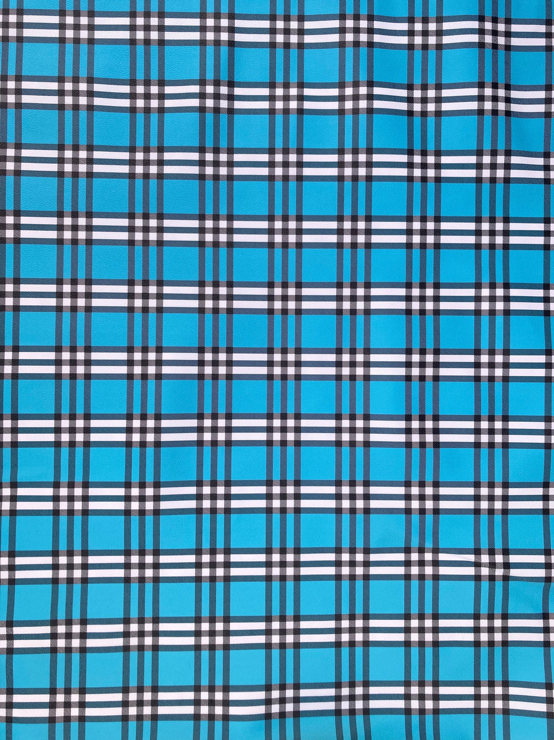 Blue Check Custom Handmade Burberry Faux Leather Fabric for DIY Arts and Crafts