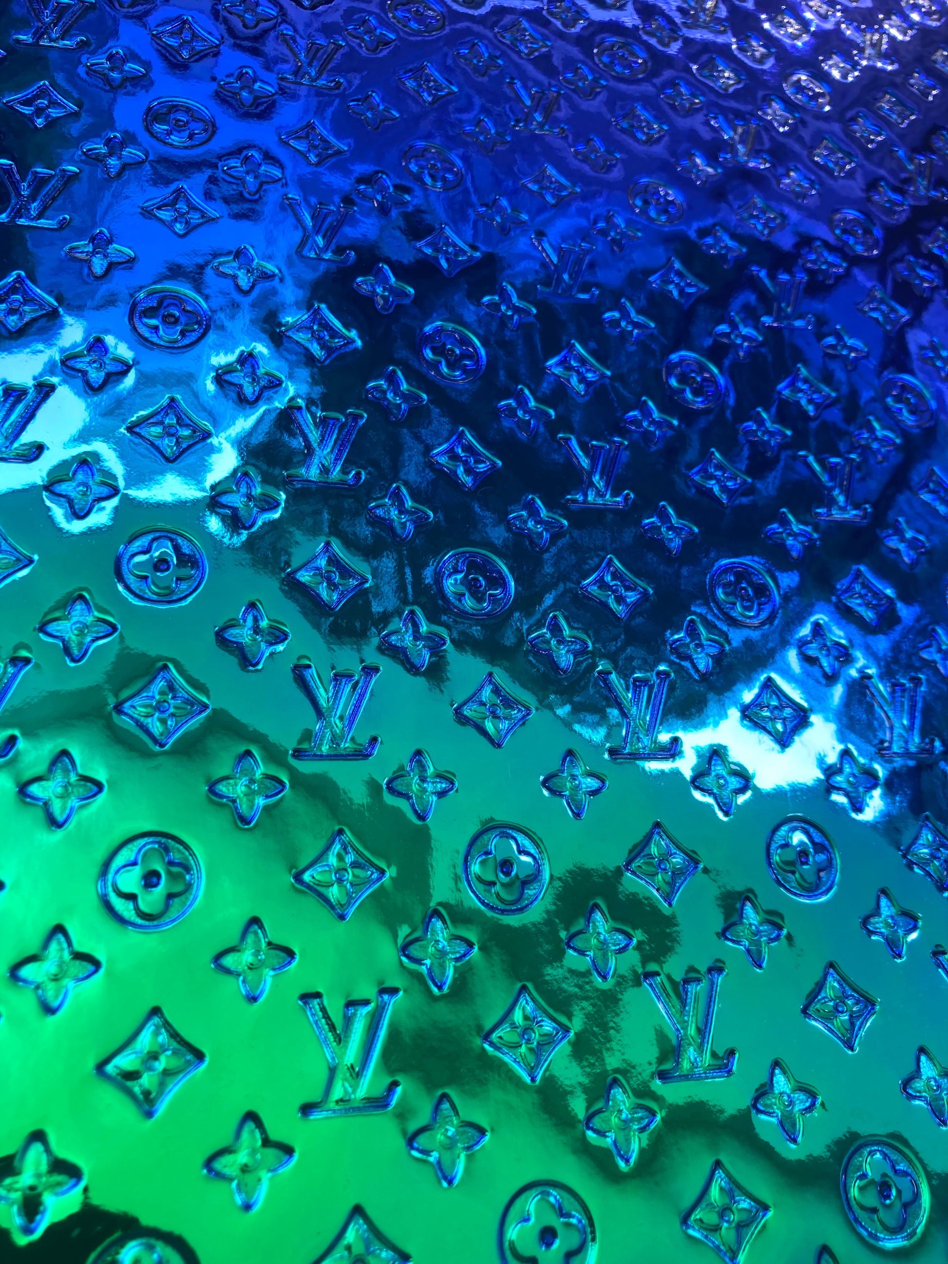 Blue Green Mirror Surface Embossed LV Faux Vinyl Leather