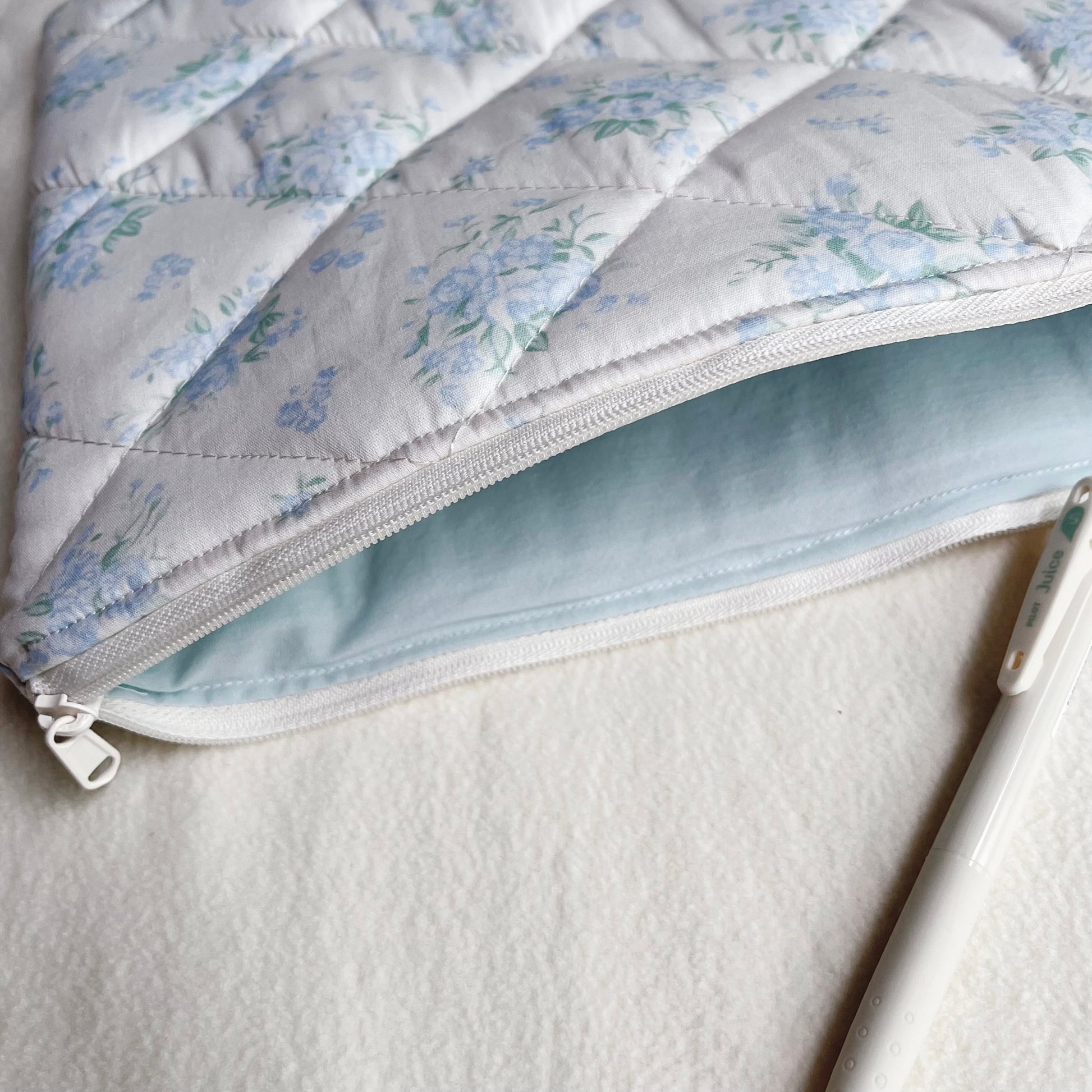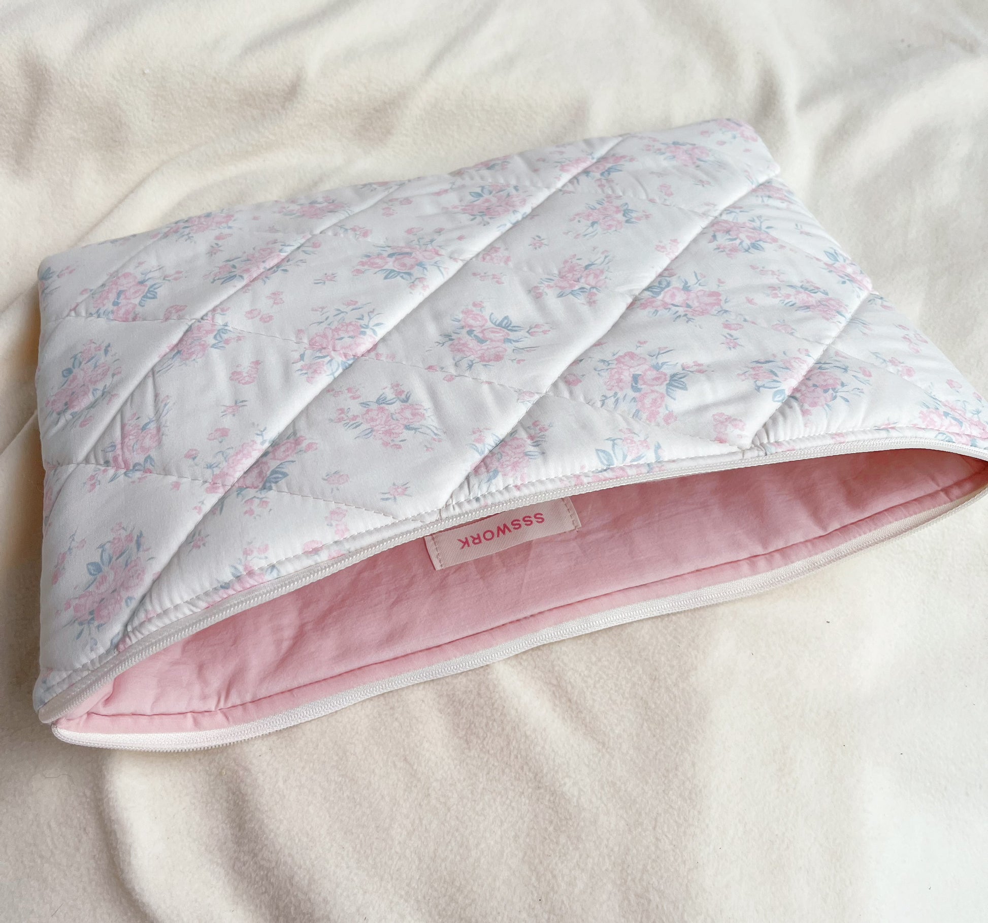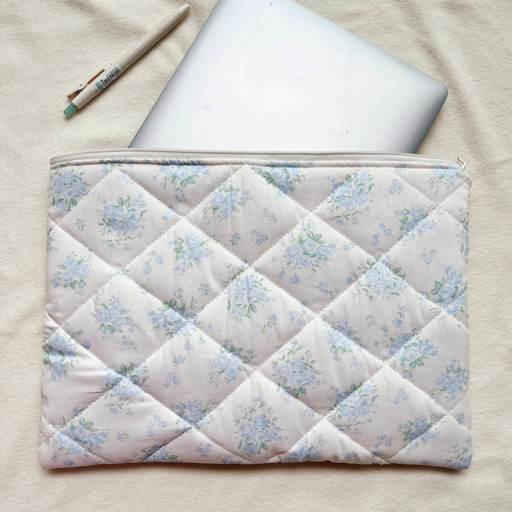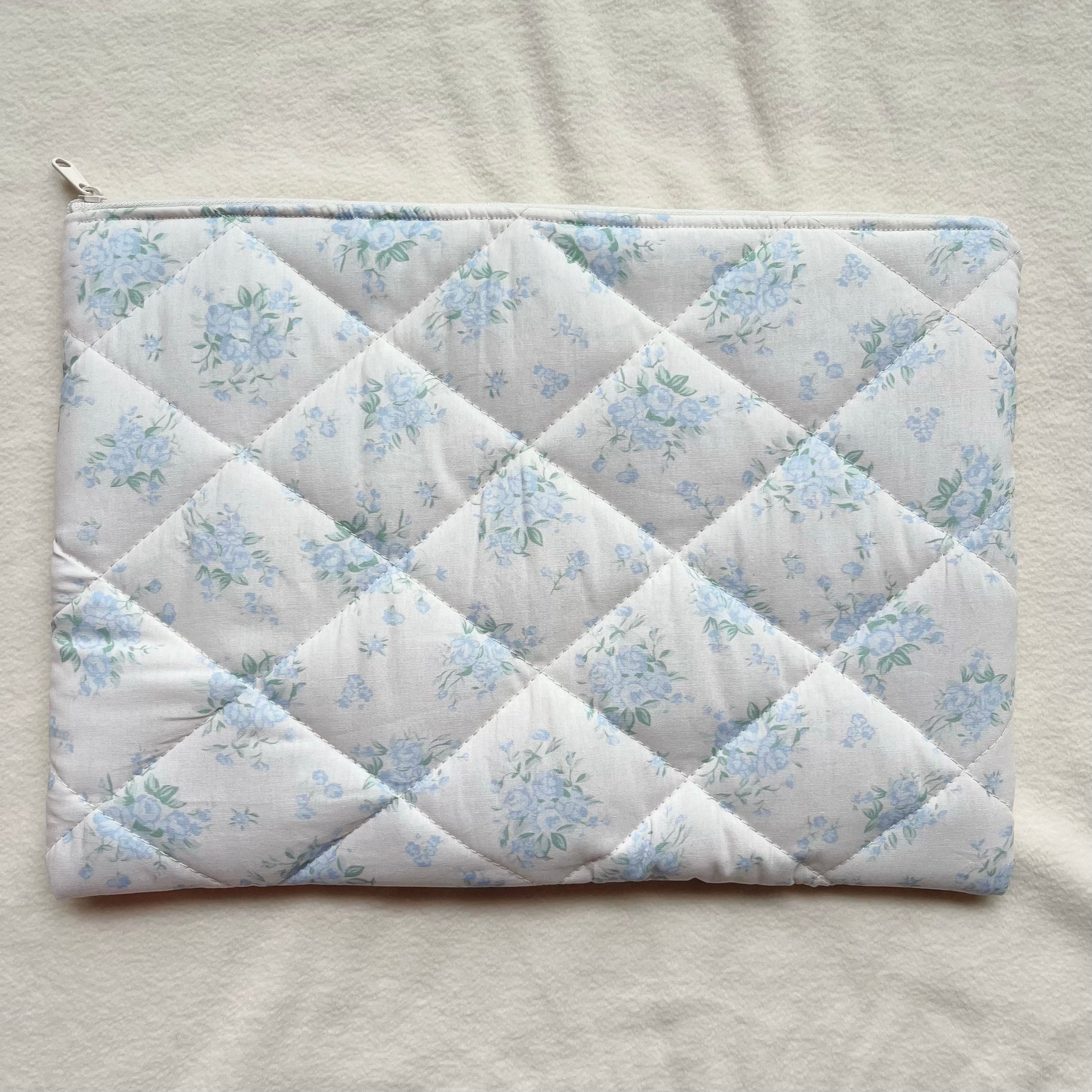 Blue/Pink Floral Handmade Quilted Laptop Sleeve, Quilted iPad Pouch