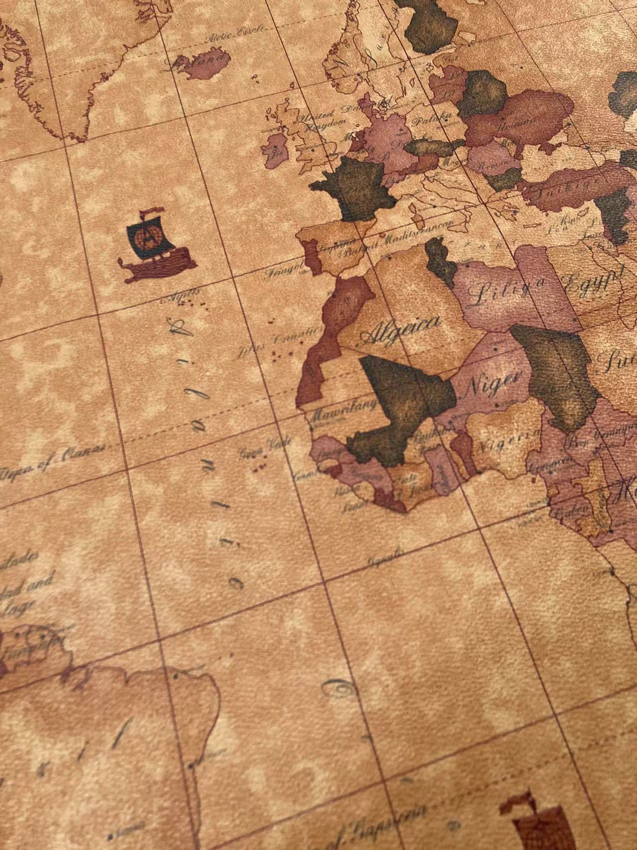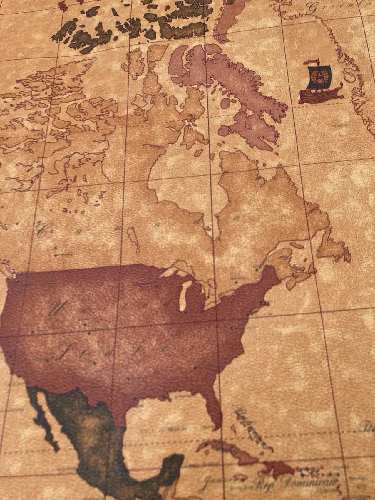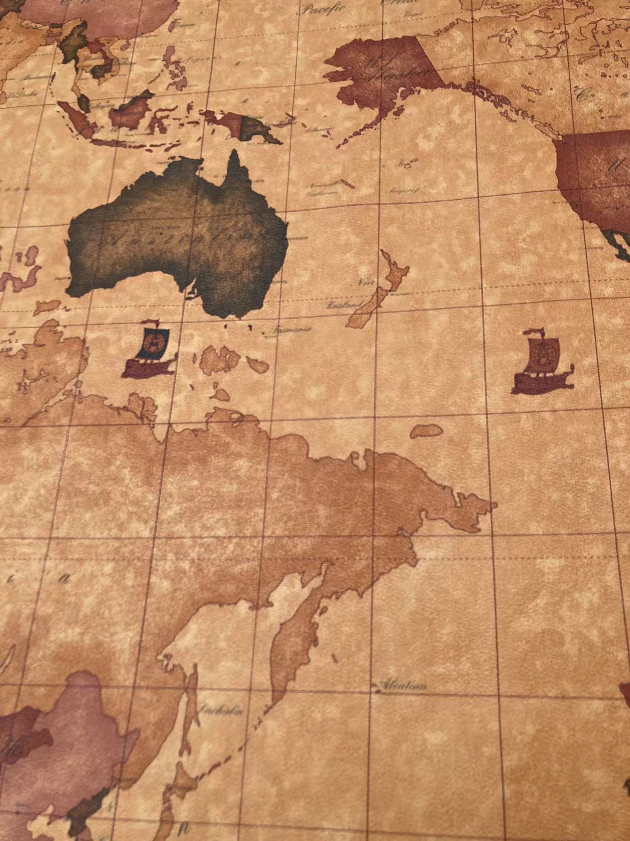 Brown Warm World Map Soft Leather for Bag Sofa Furniture Custom