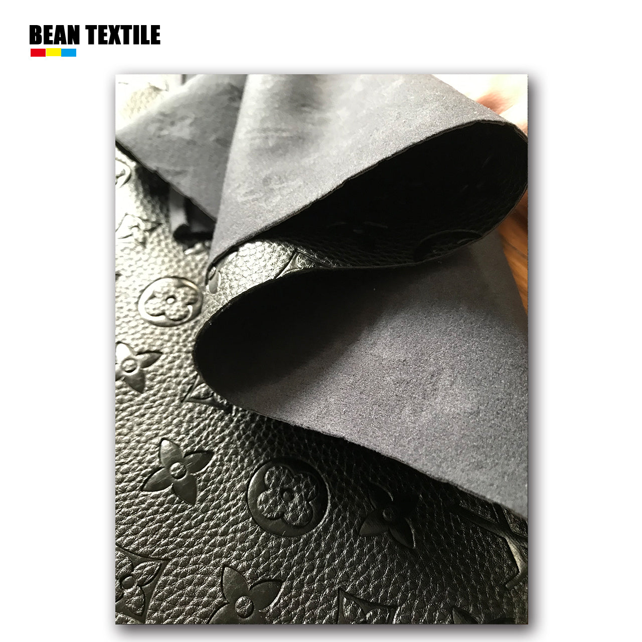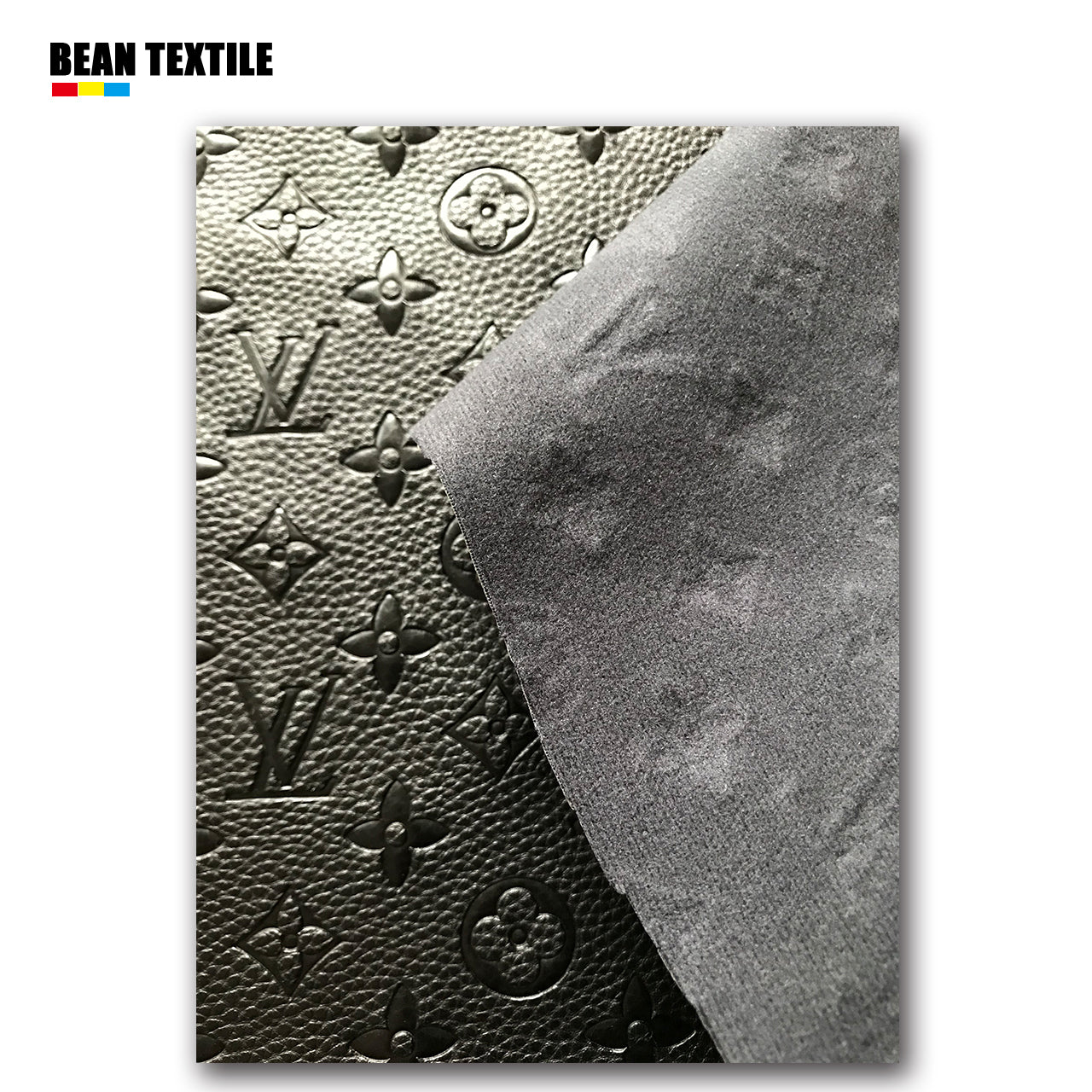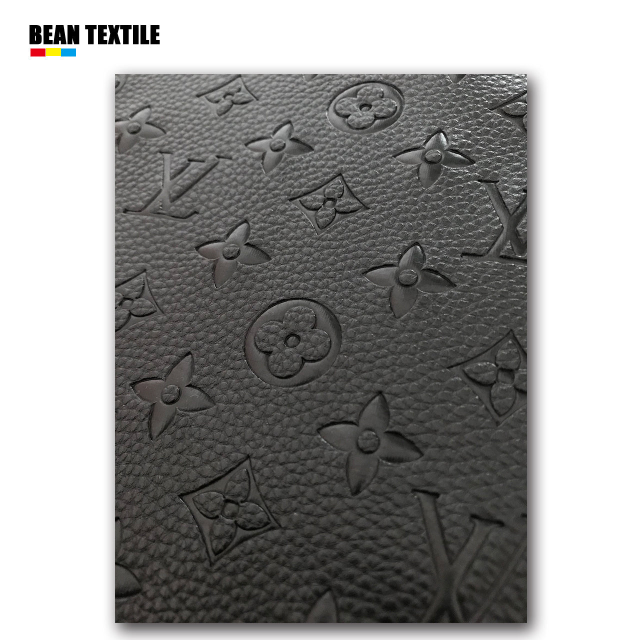 Black embossed LV craft leather fabric by yard