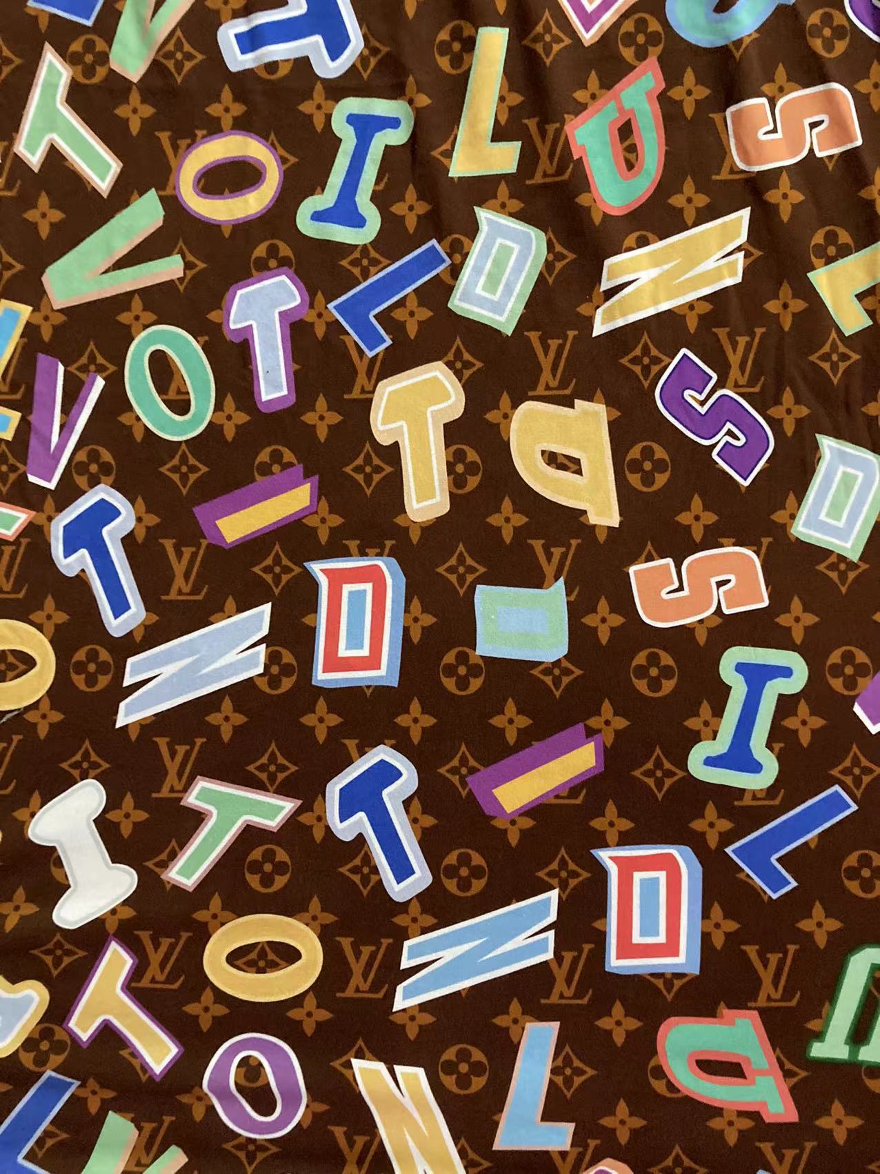 Cotton LV lettering fabric is available. Digital printing, vivd color.