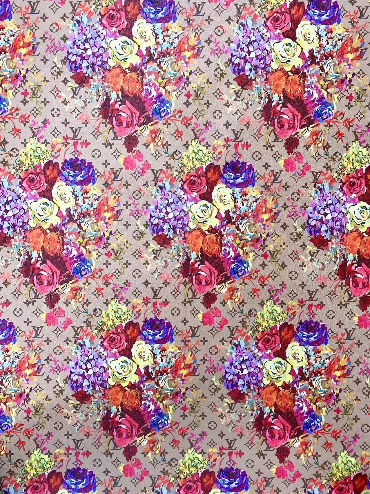 Custom Designer LV Vinly Floral Pattern for DIY Sewing Handmade Upholstery Custom Sneakers