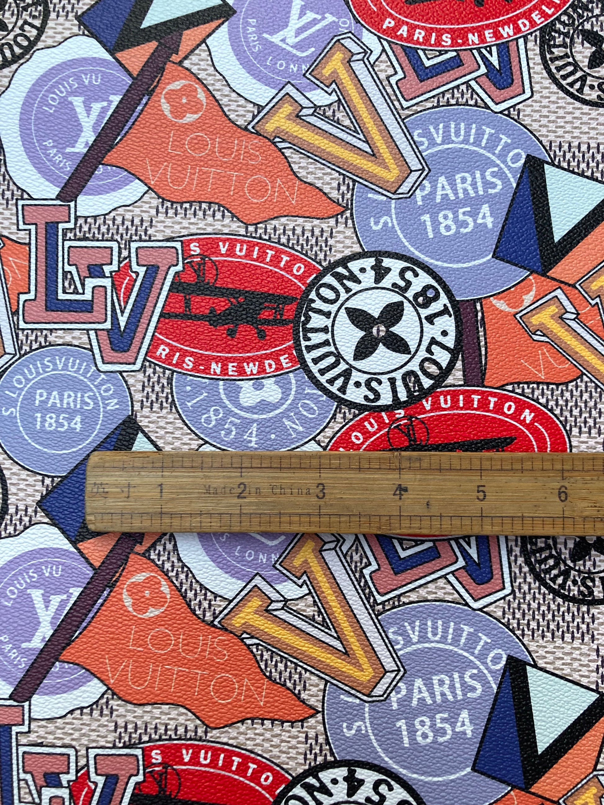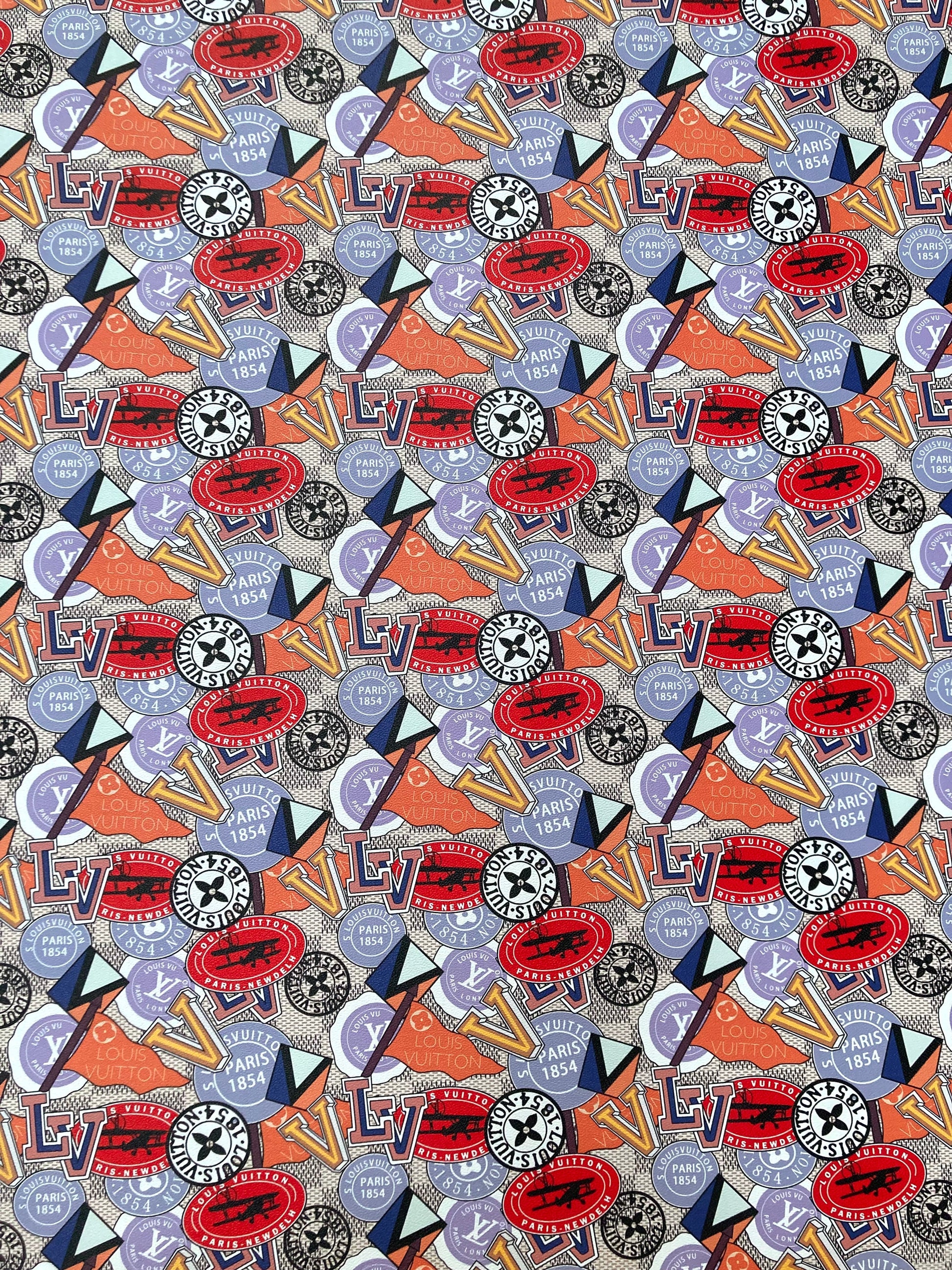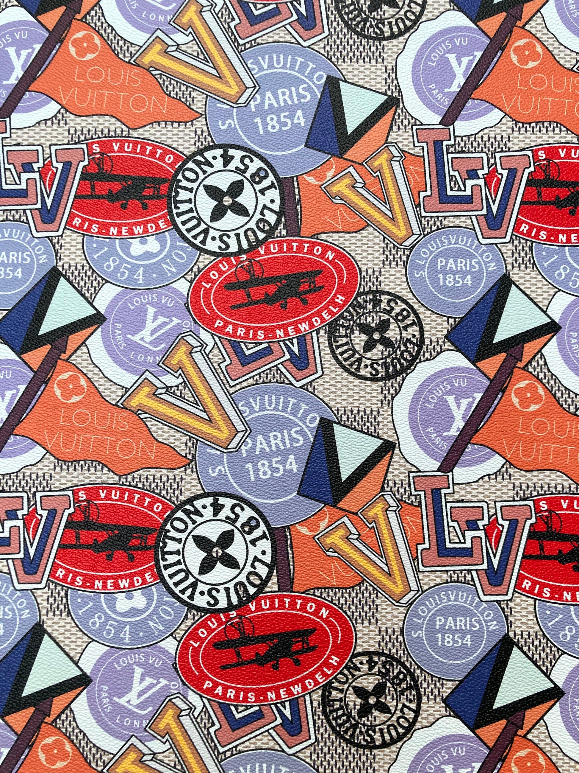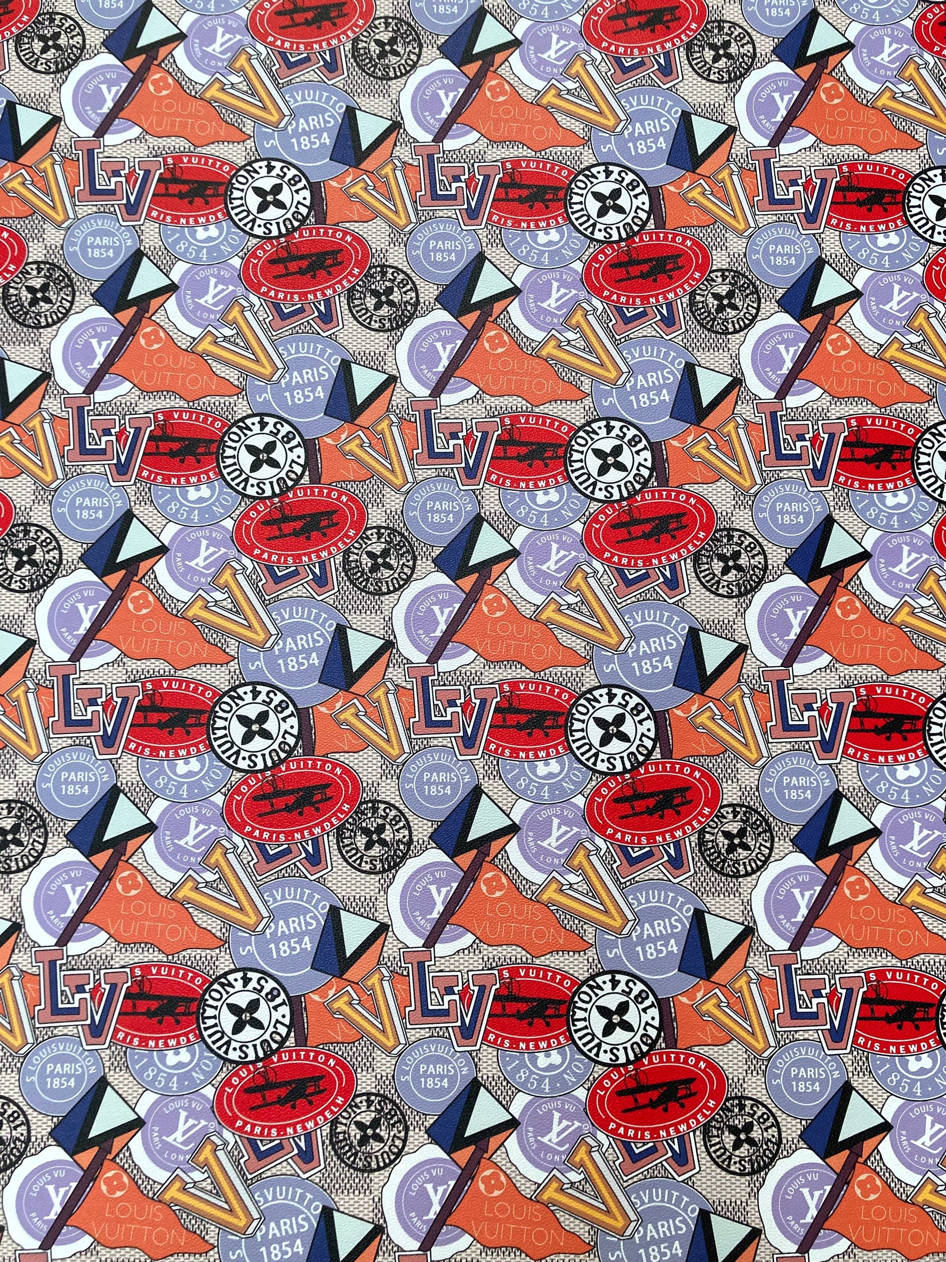 Custom Leather Handcraft Material Vintage LV Pattern Vinyl Fabric for Bag Sneakers