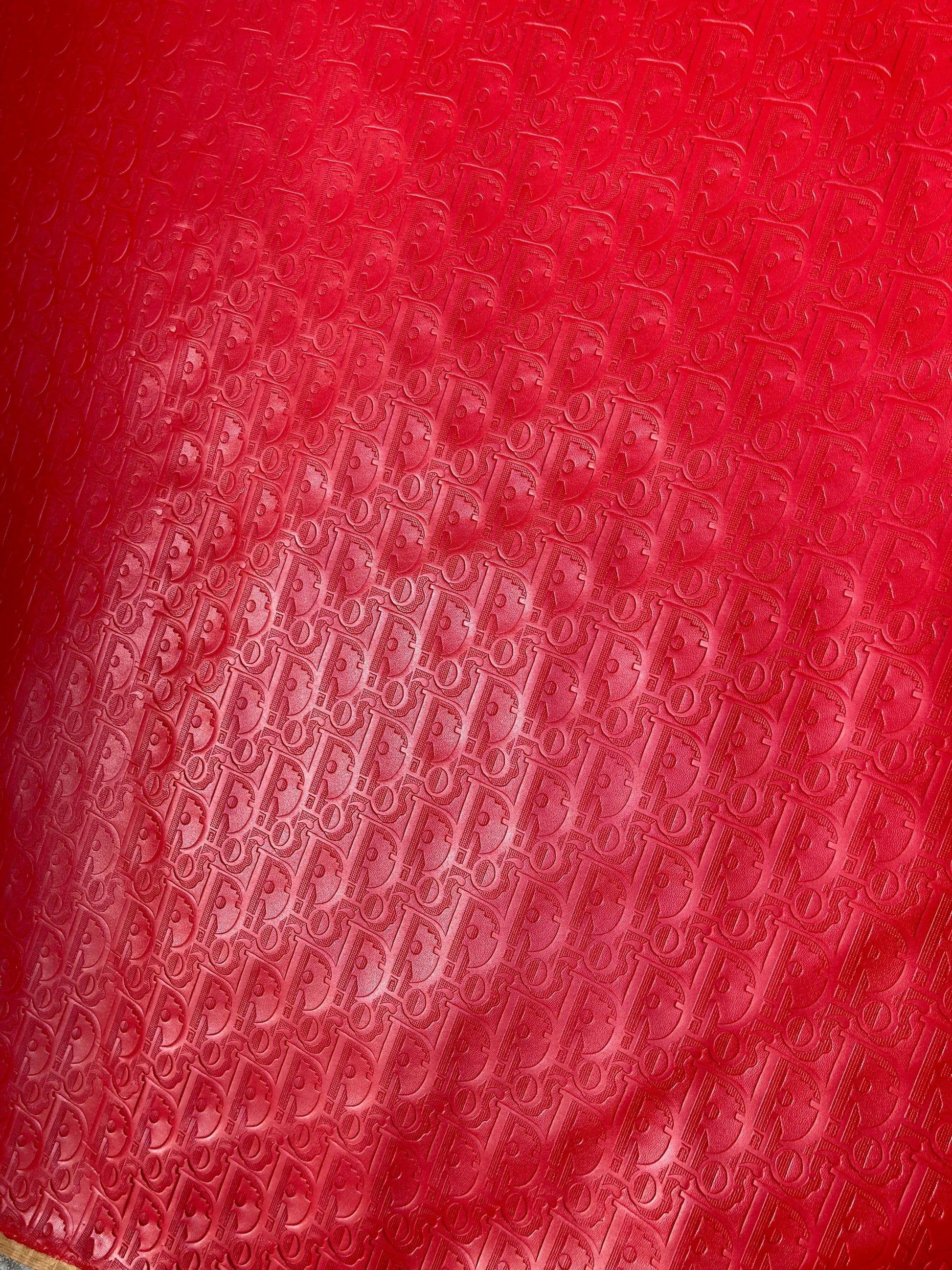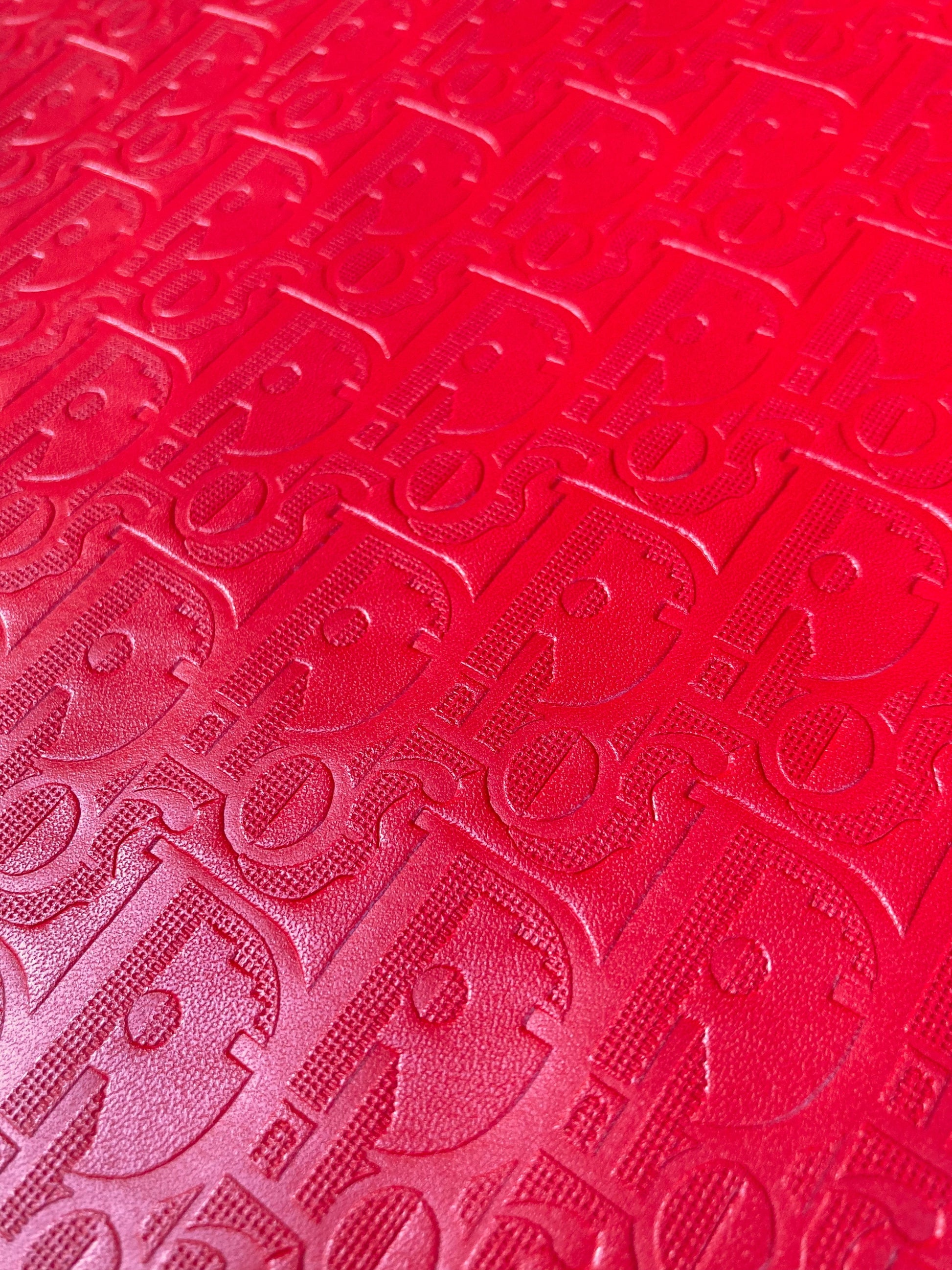 Custom Leather Handcraft Pure Red Embossed Dior Fabric