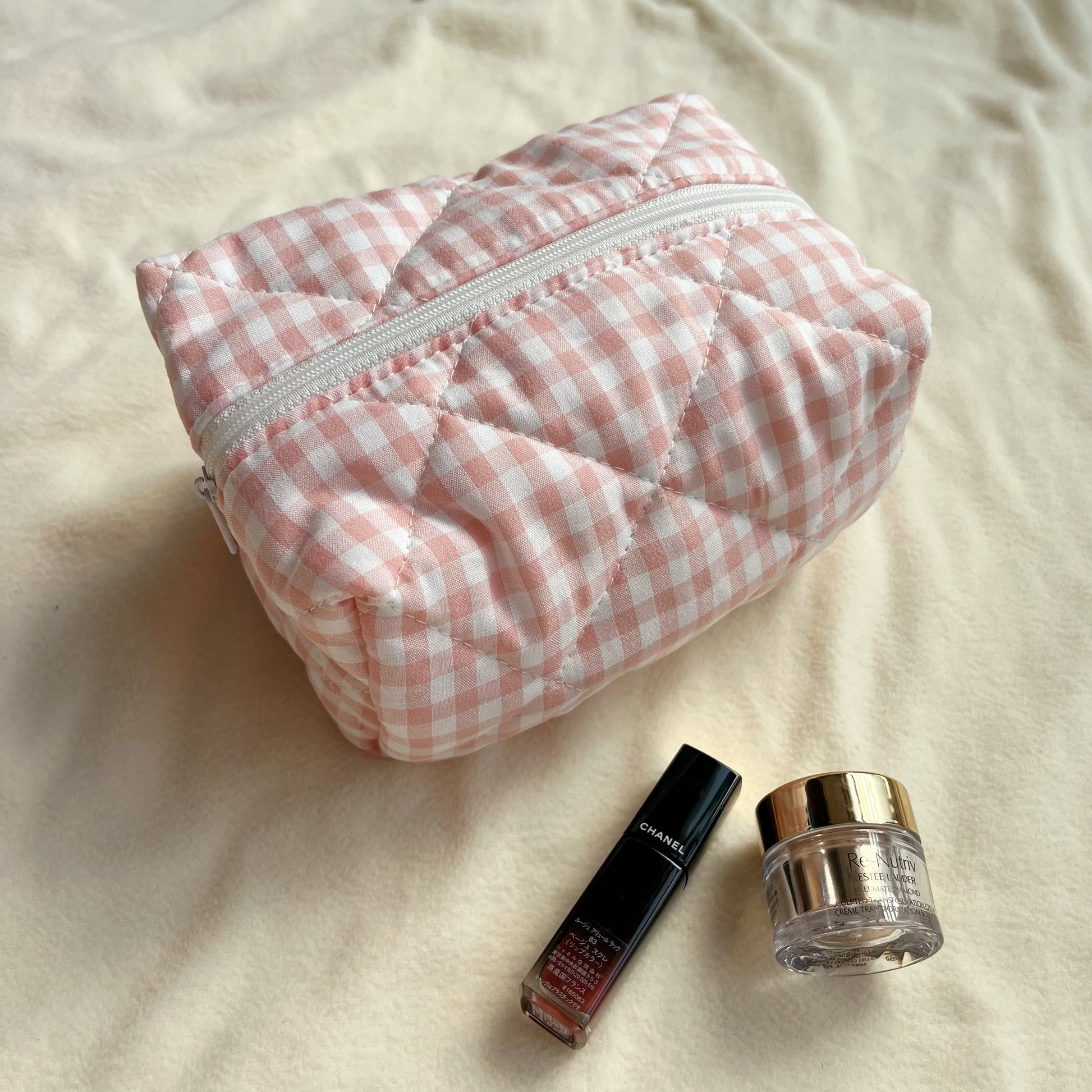 Green/purple gingham quilted makeup bag,Bridesmaid gift, Wedding gift, Gift for her