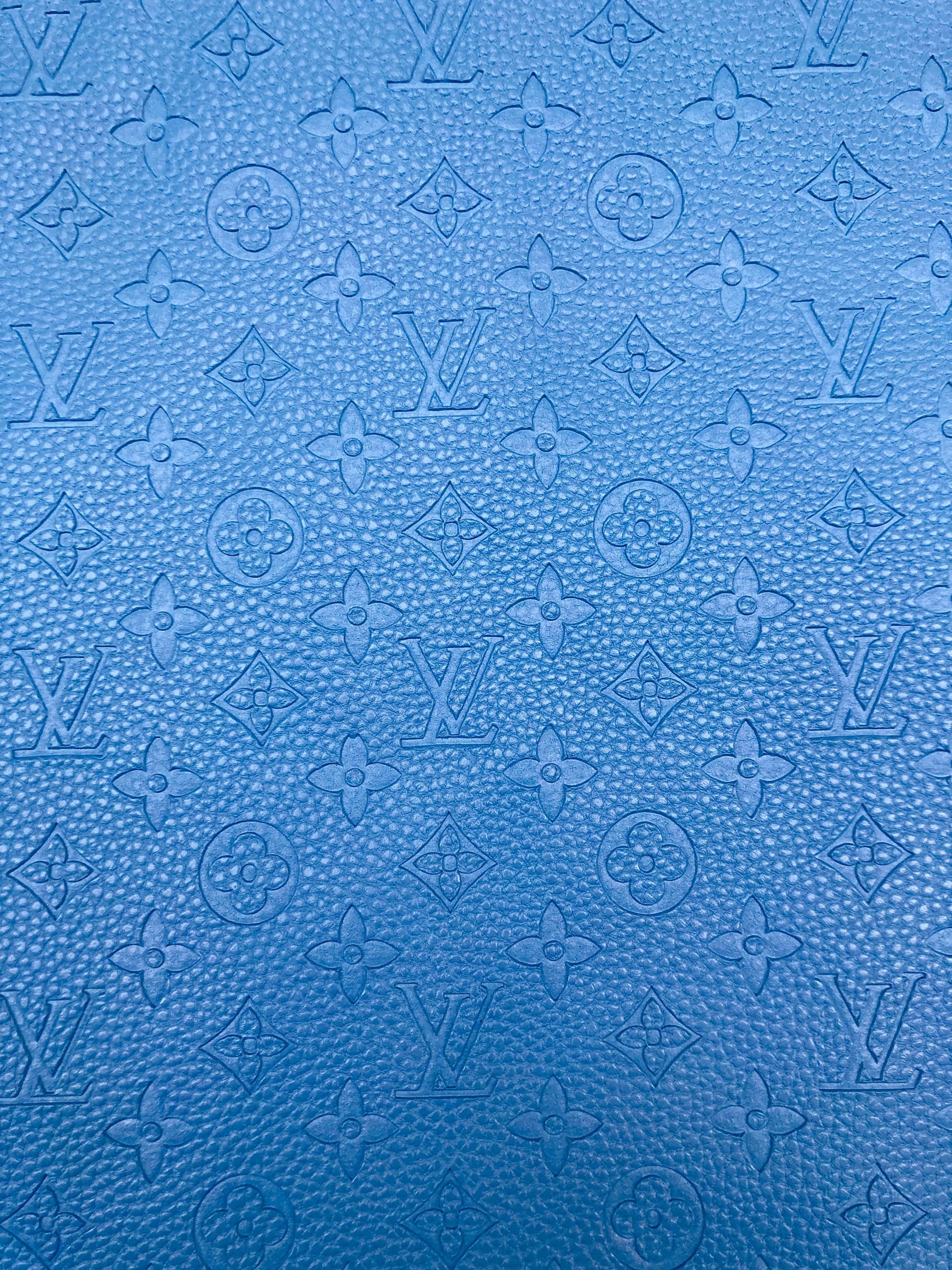 Handmade Baby Blue Embossed LV Leather Fabric for Custom Crafts Upholstery