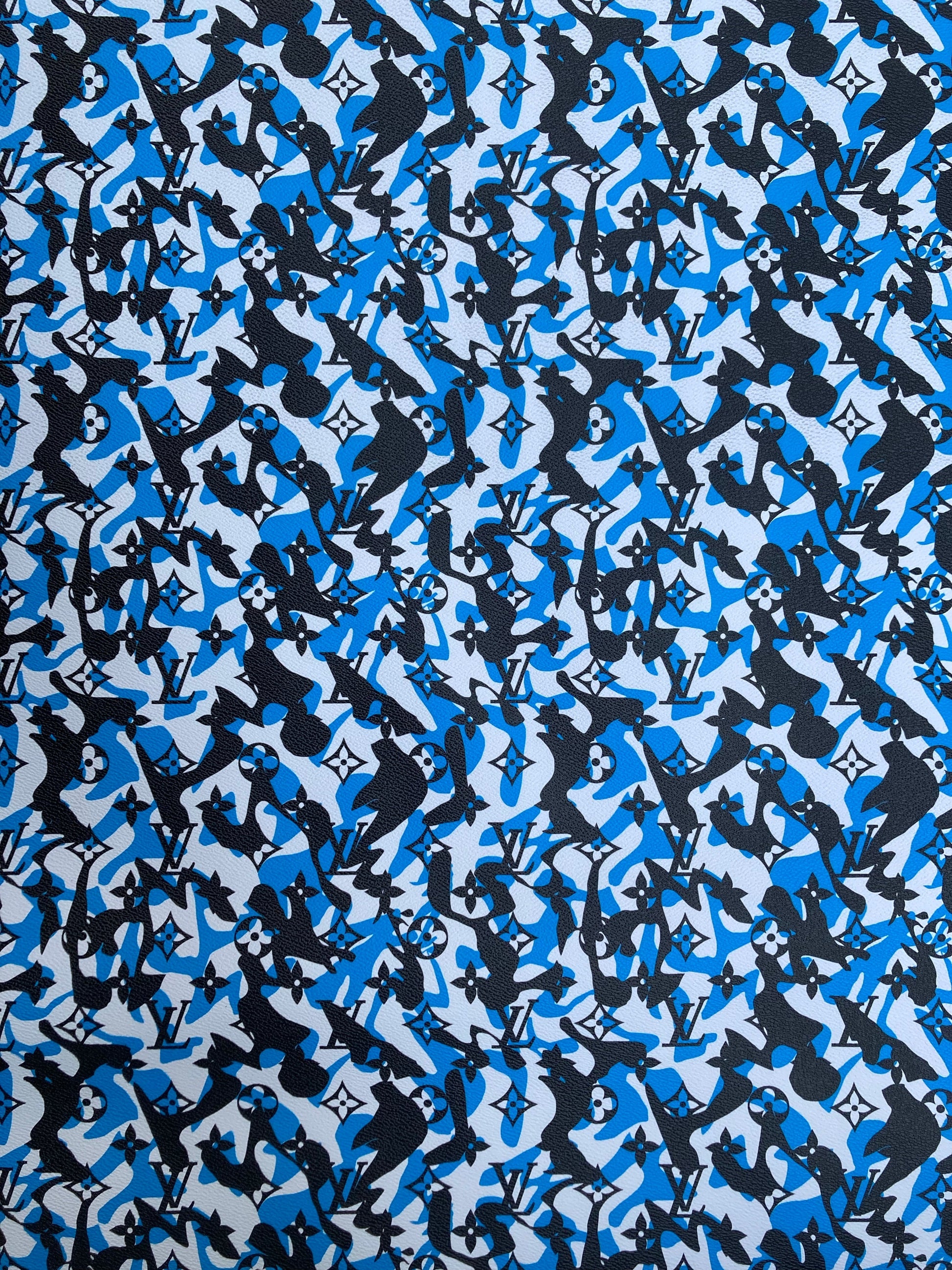 Handmade Blue Camouflage LV Vinyl Leather Fabric for Custom Sneakers