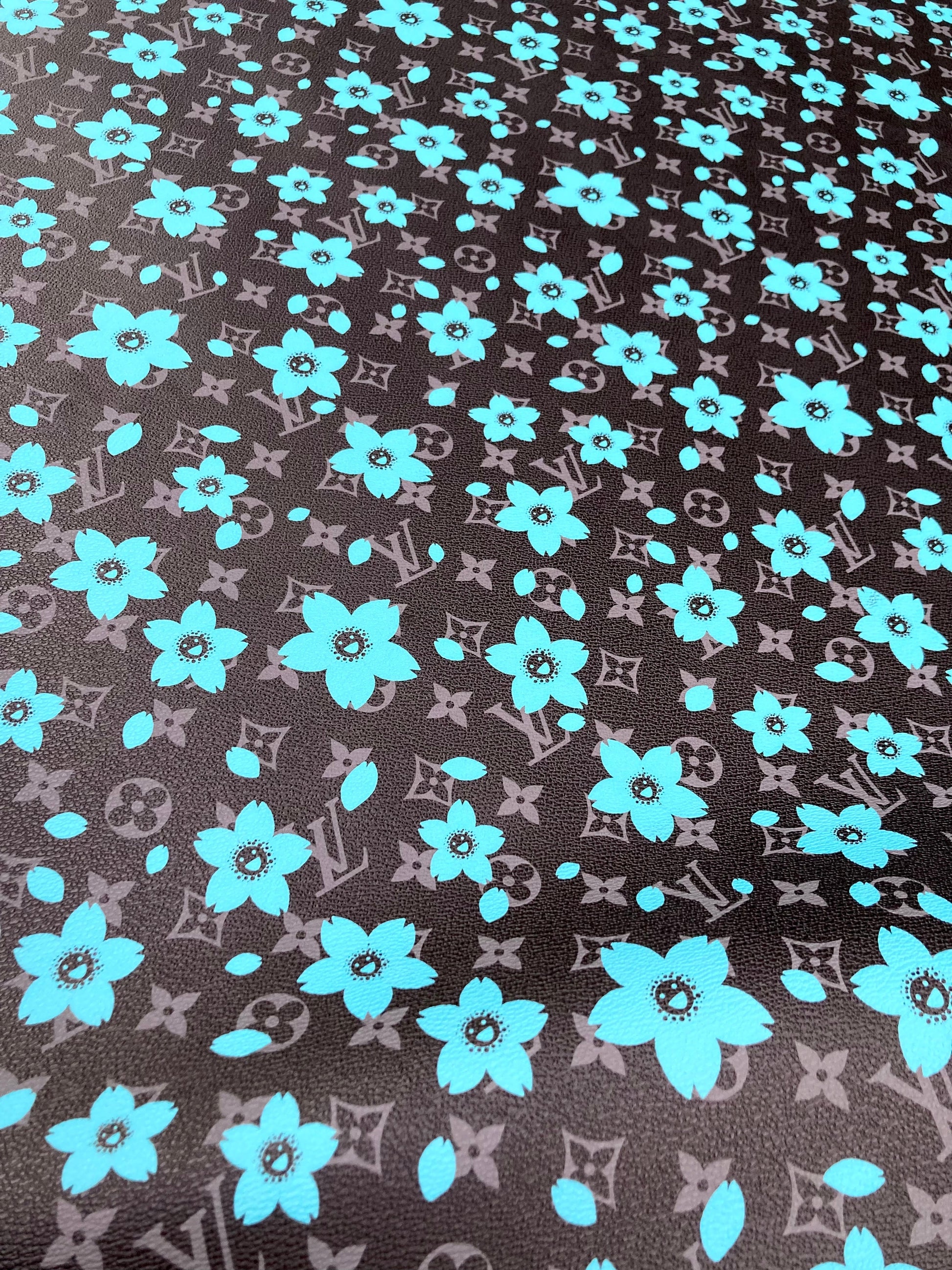 Handmade Crafts Black Flower LV Designer Leather Fabric for Custom Sneakers