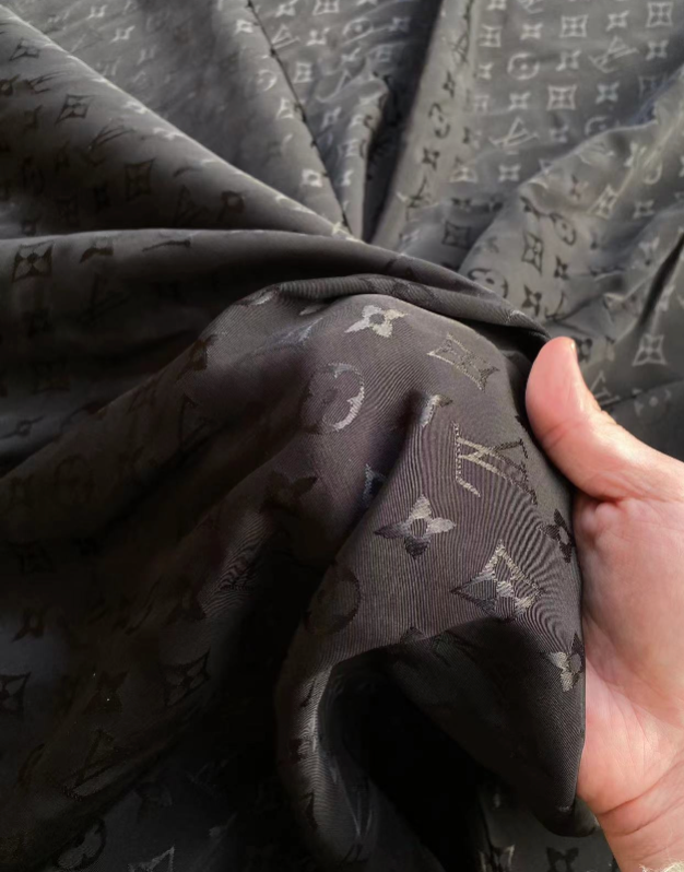 Black jacquard Lv silk fabric is available.