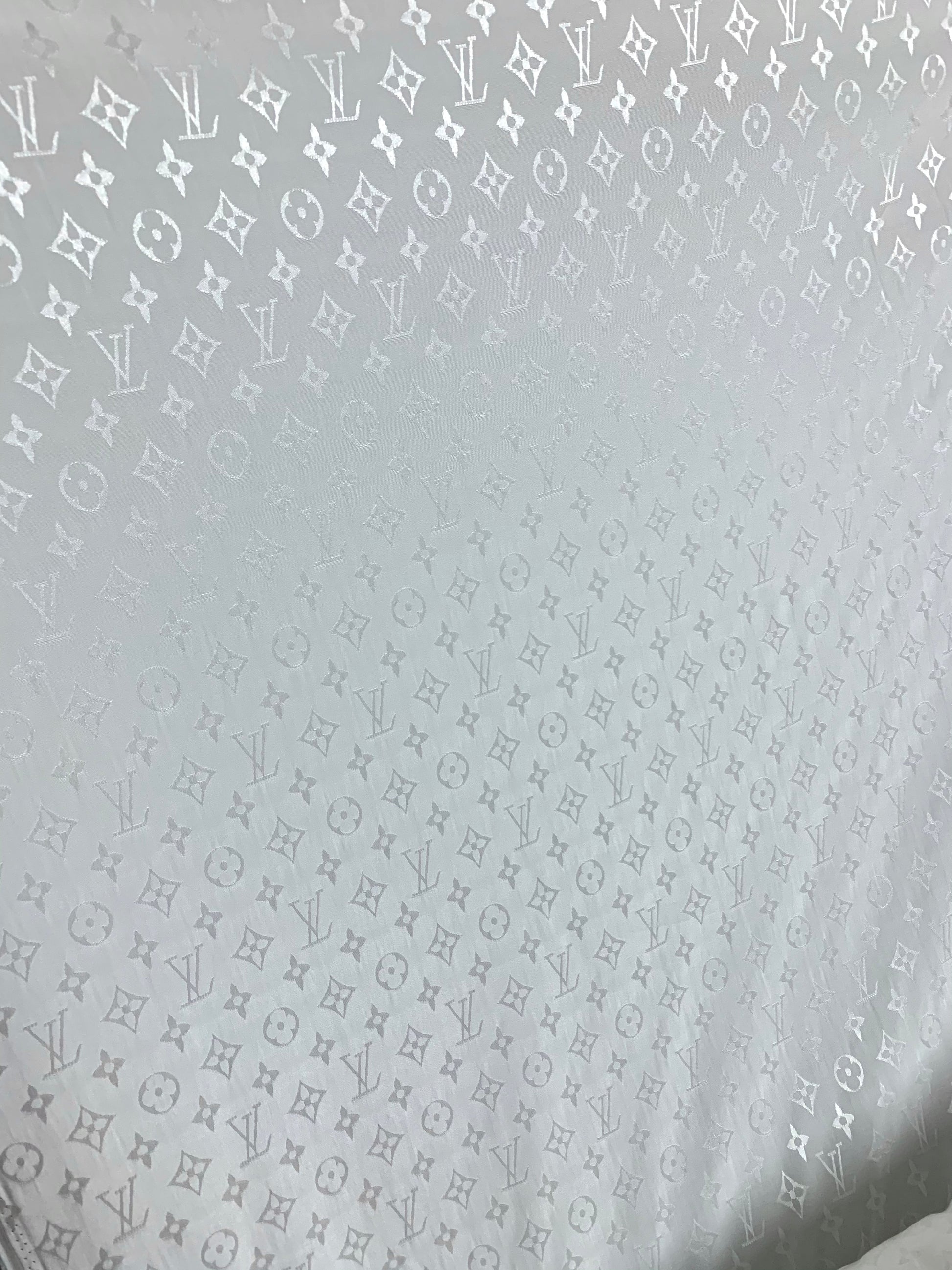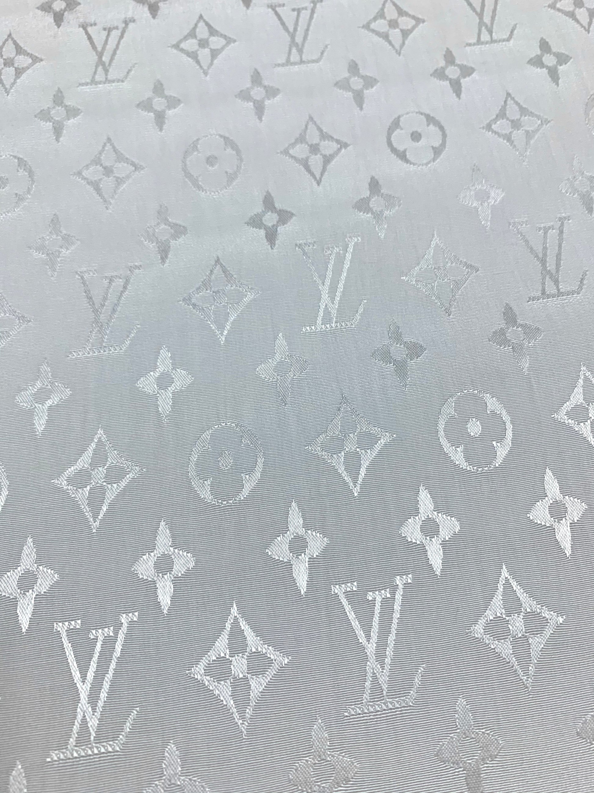 White jacquard Lv silk fabric is available.