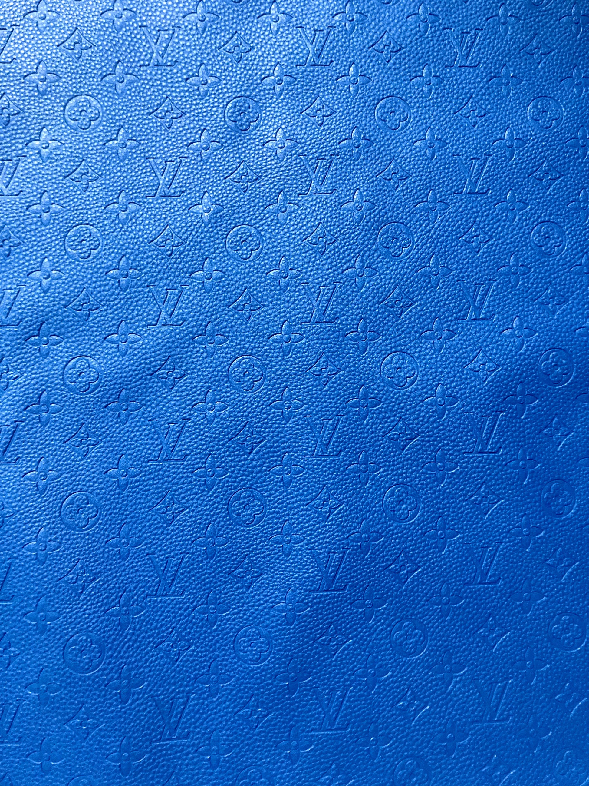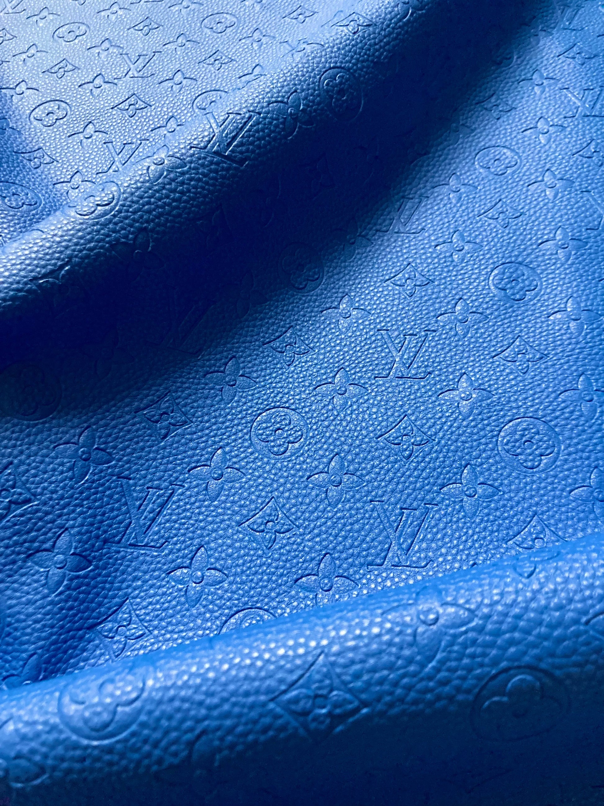 Handmade Leather Fabric Royal Blue Embossed LV for Sneakers Upholstery