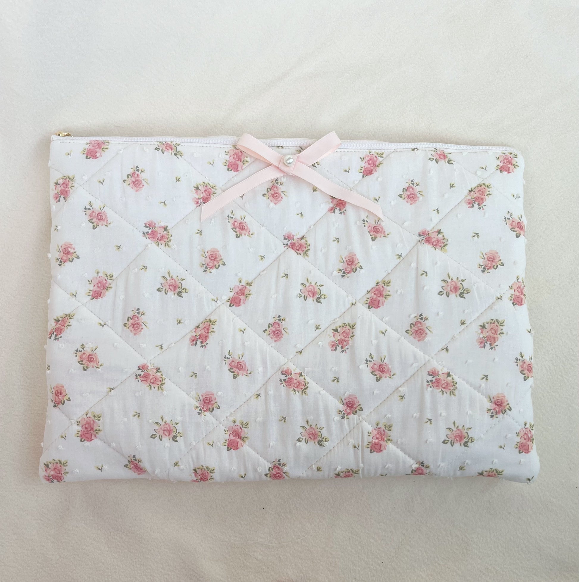 Pink Floral Handmade Quilted Laptop Sleeve/Bag, Quilted iPad Pouch