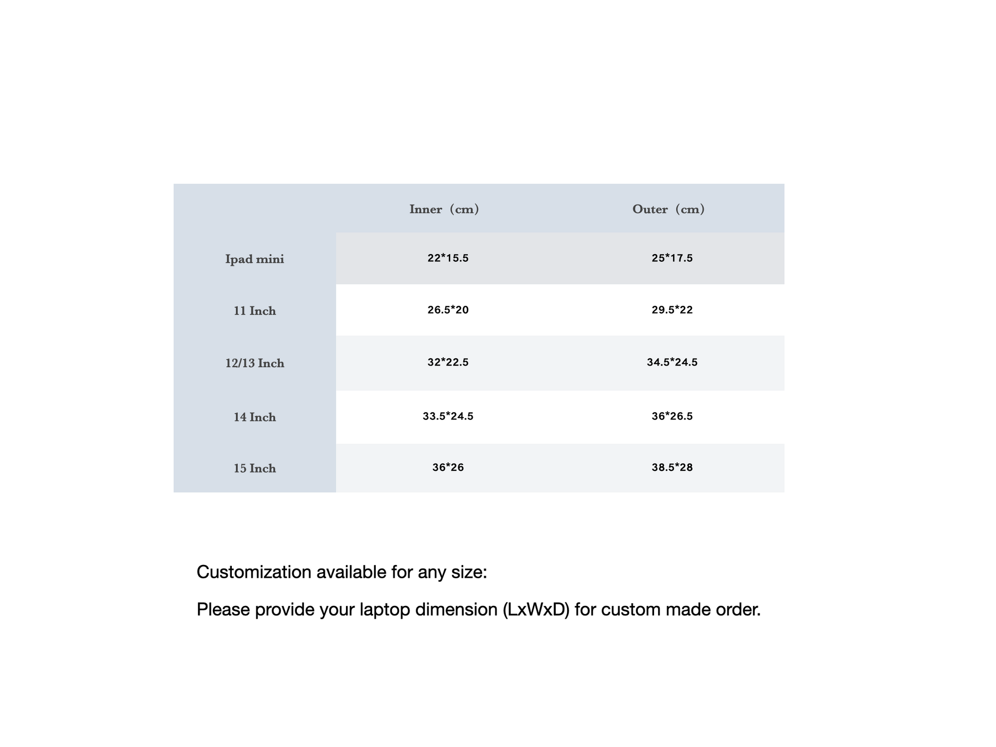 Please provide your laptop dimension (LxWxD) for custom made order.