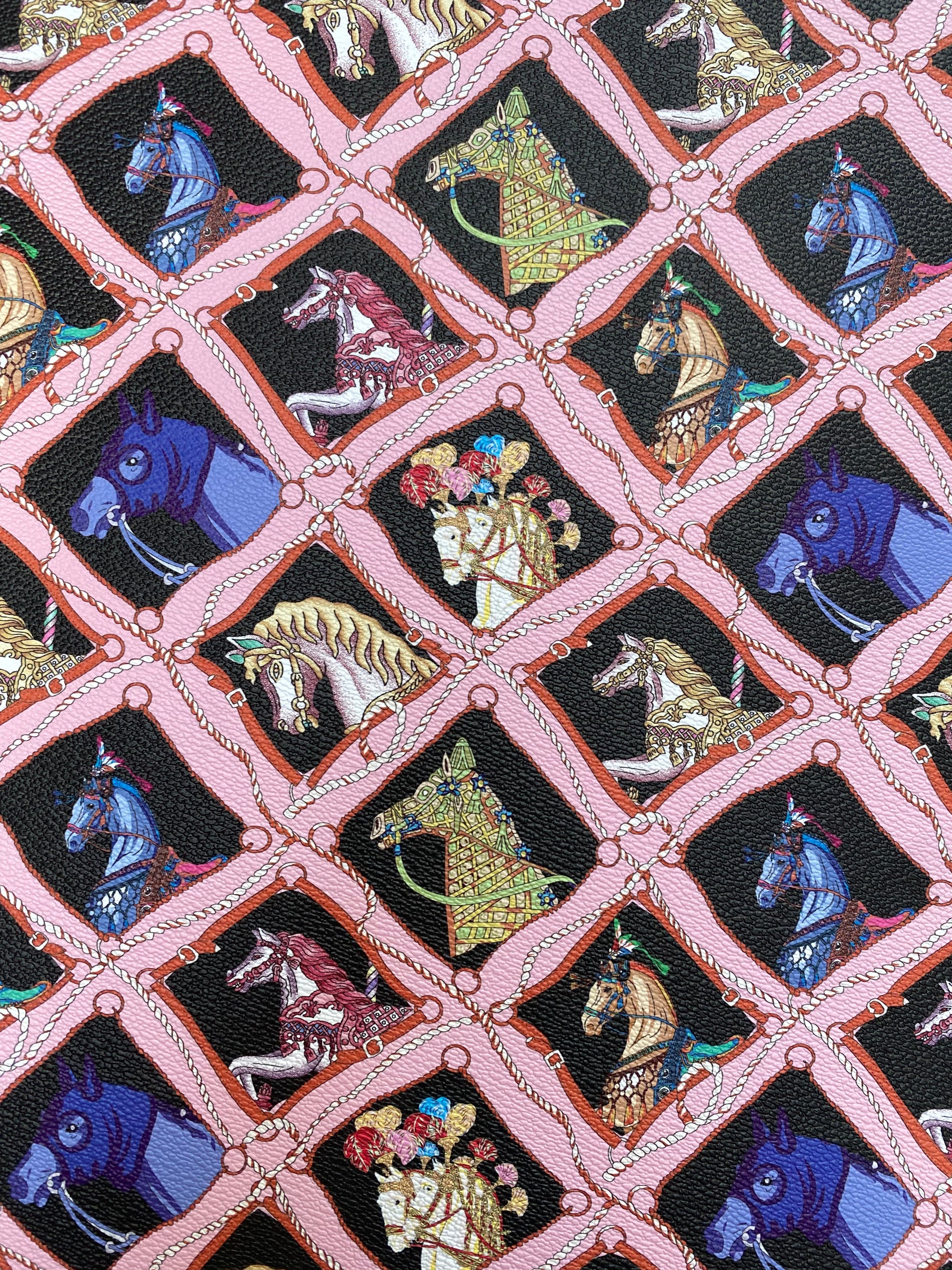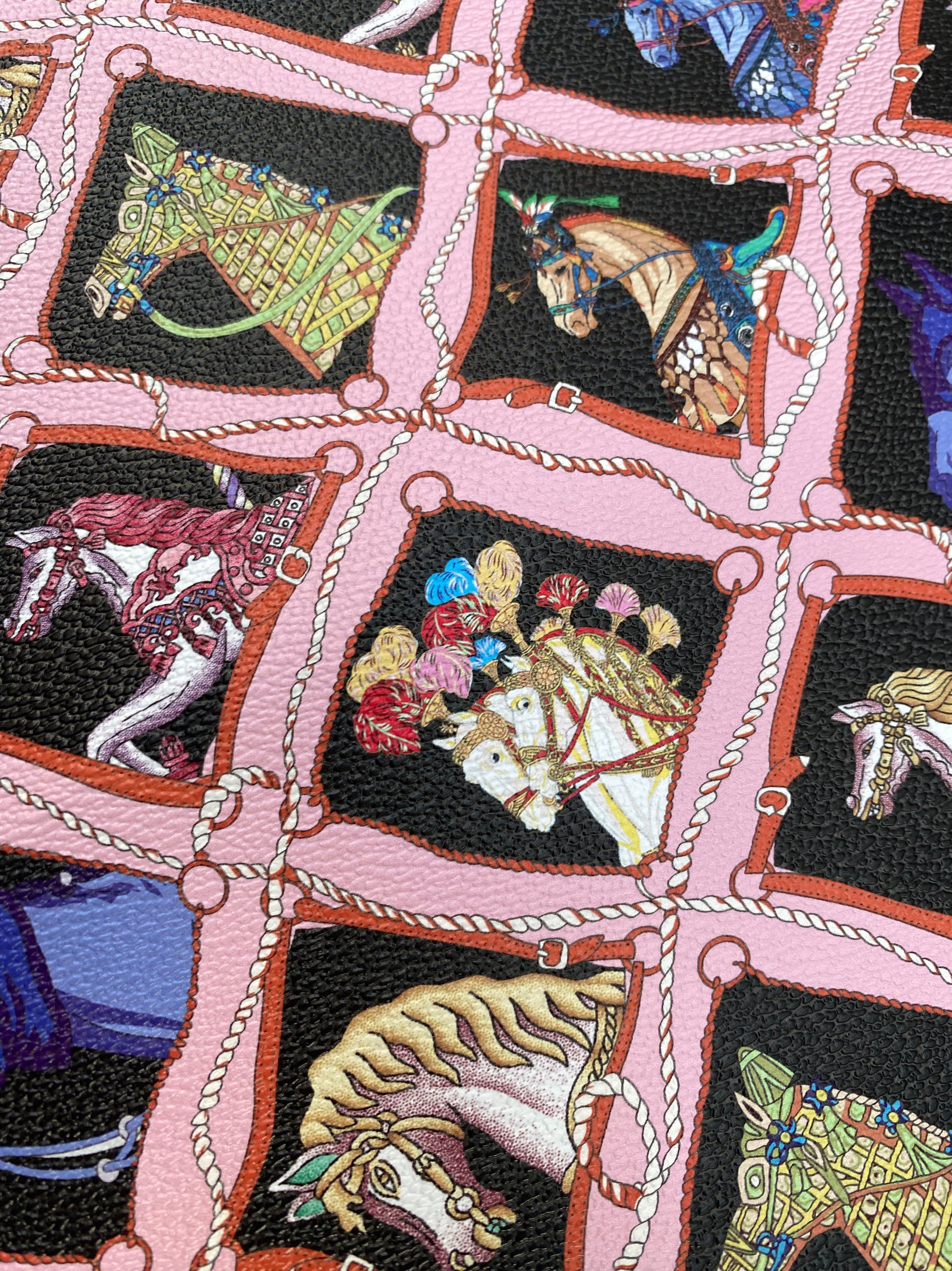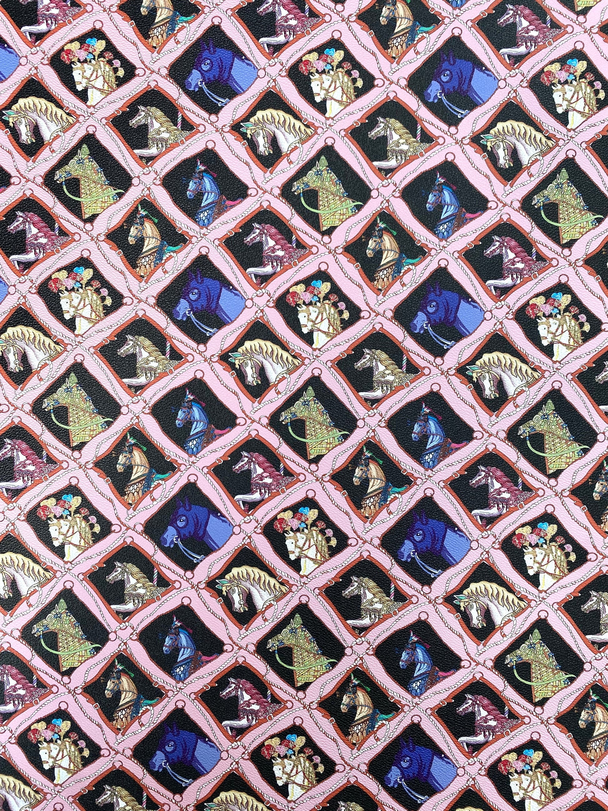 Hermes Horse Designer Scarf Pattern Leather Fabric for Handmade DIY Crafts