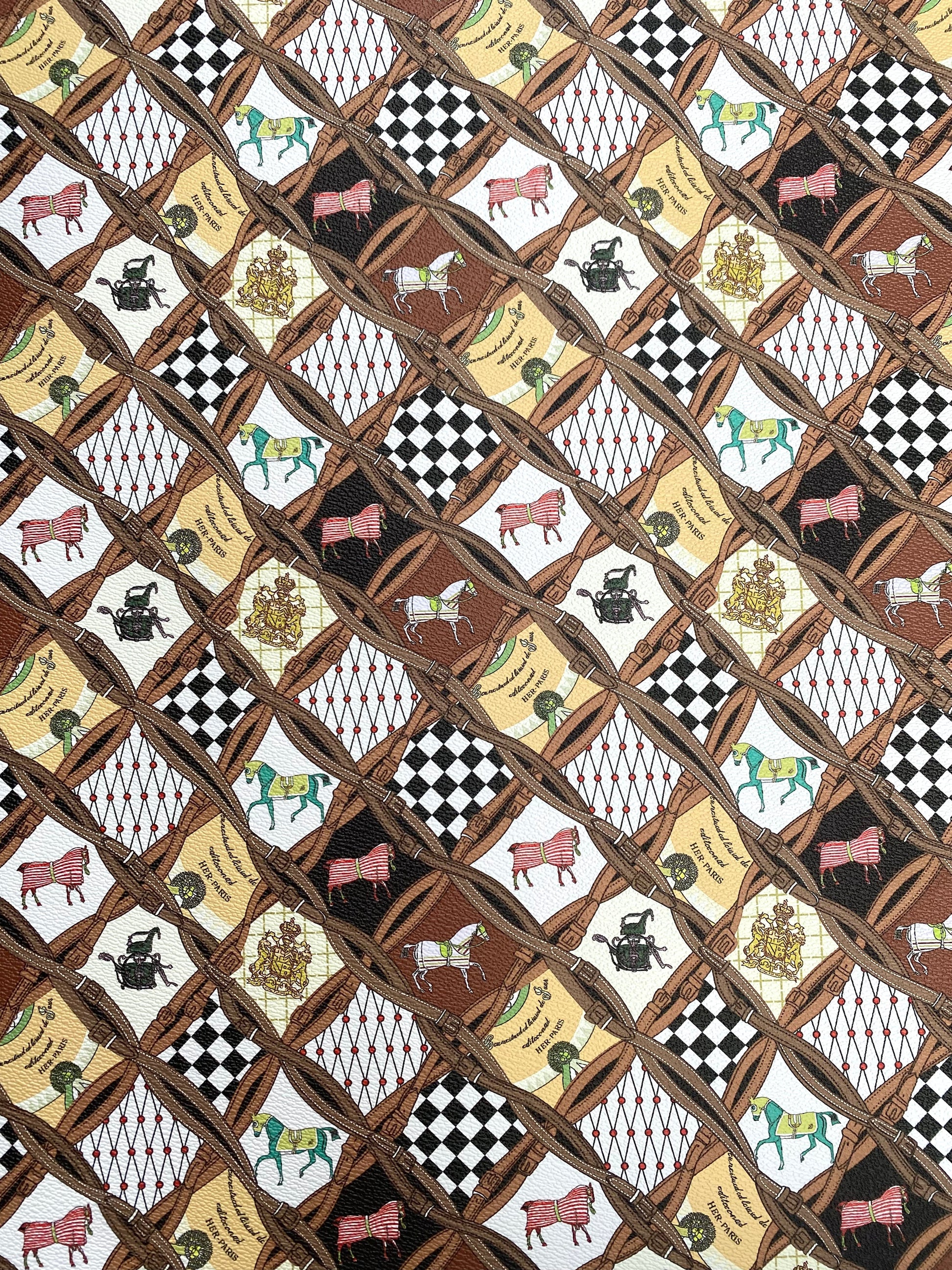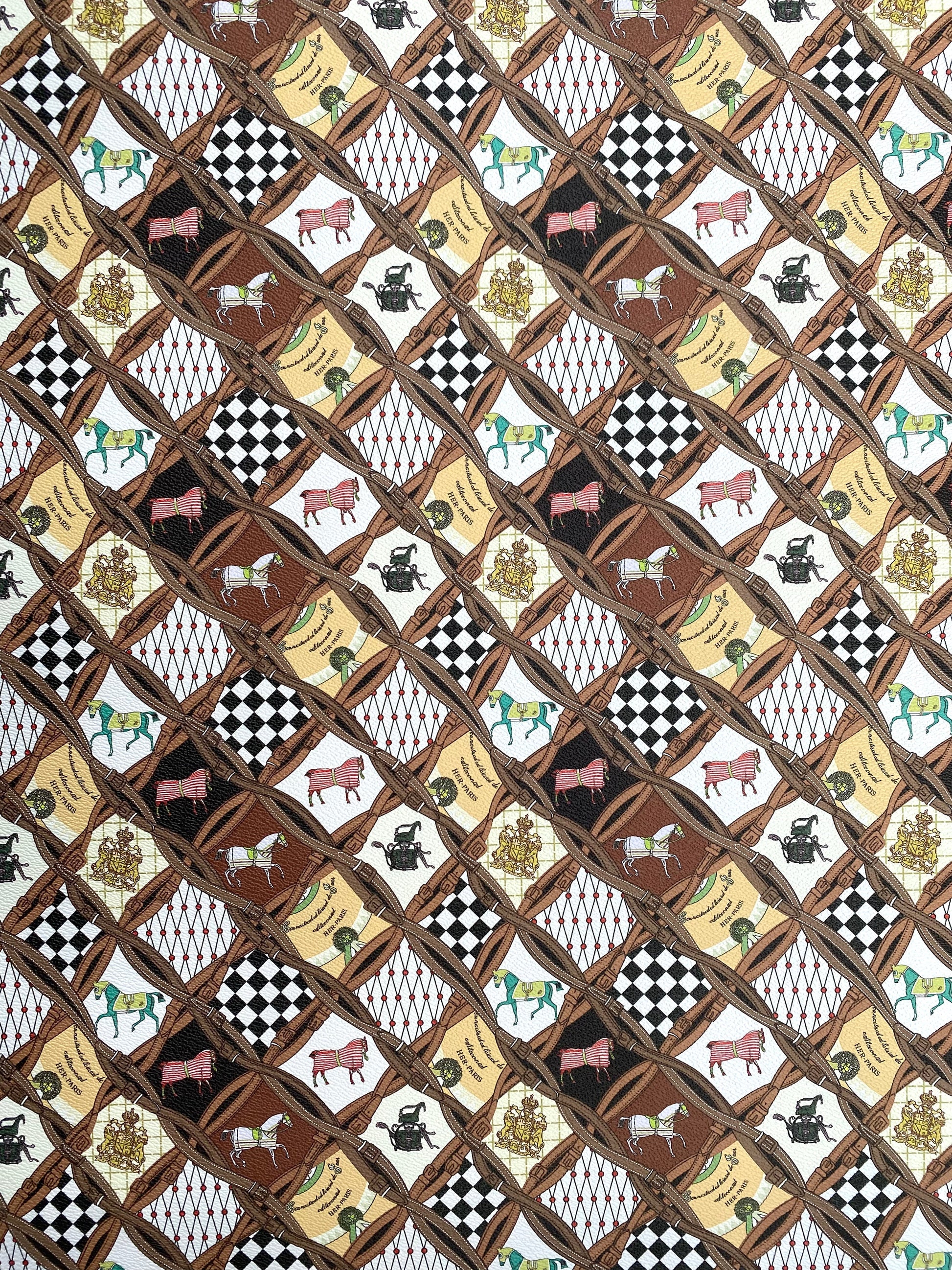 Hermes Horse Designer Scarf Pattern Leather Fabric for Handmade DIY Crafts.