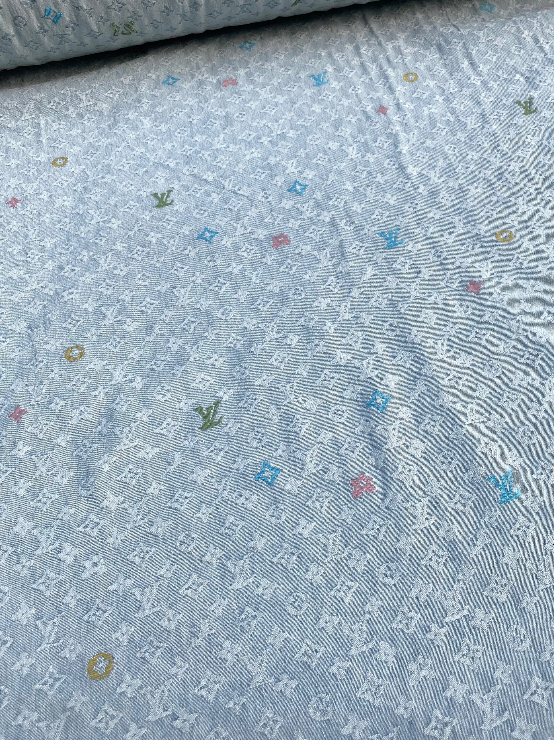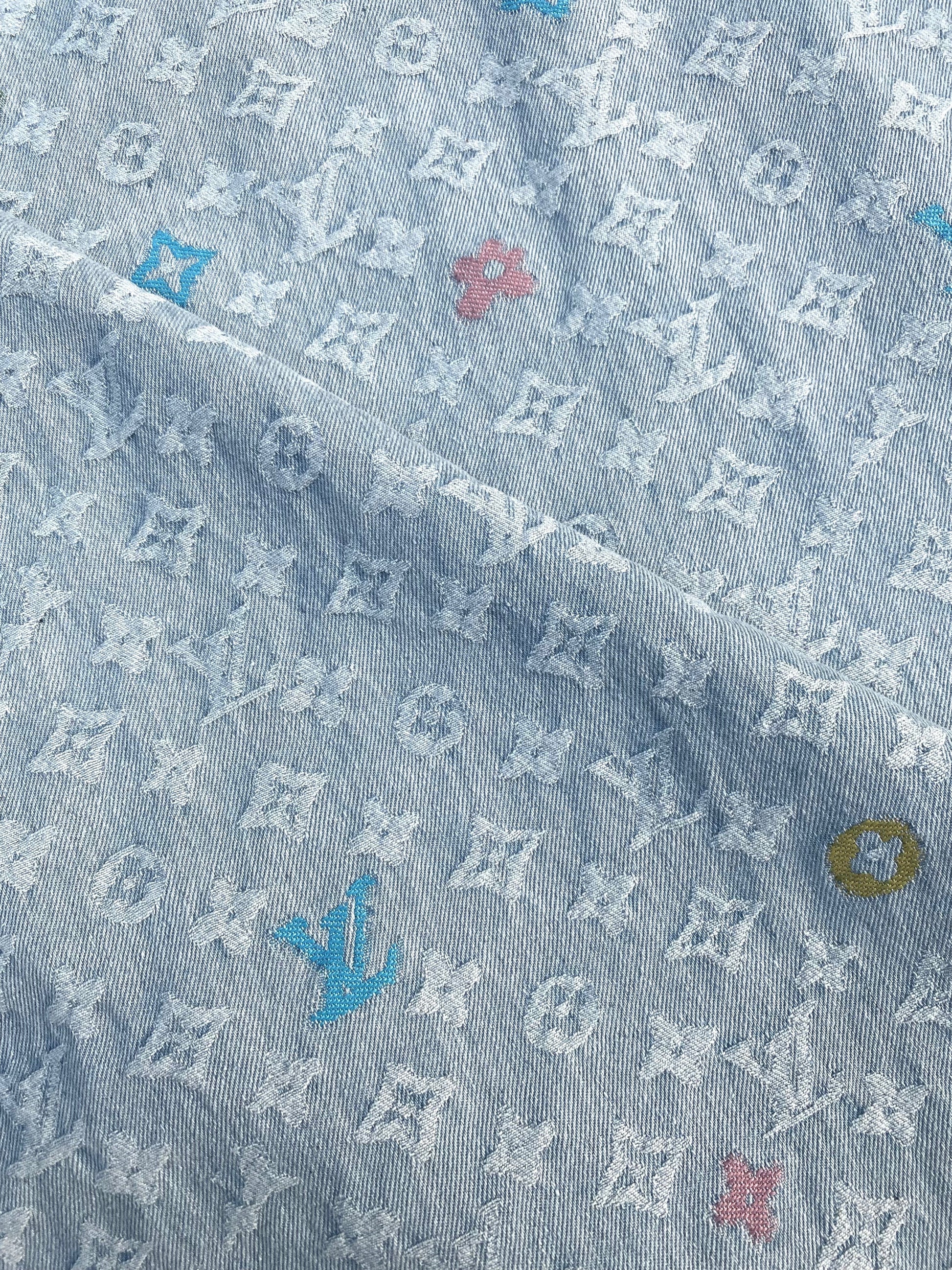 Light LV Louis Vuitton Denim Fabric Sold by Yard for Custom Handmade Jeans DIY