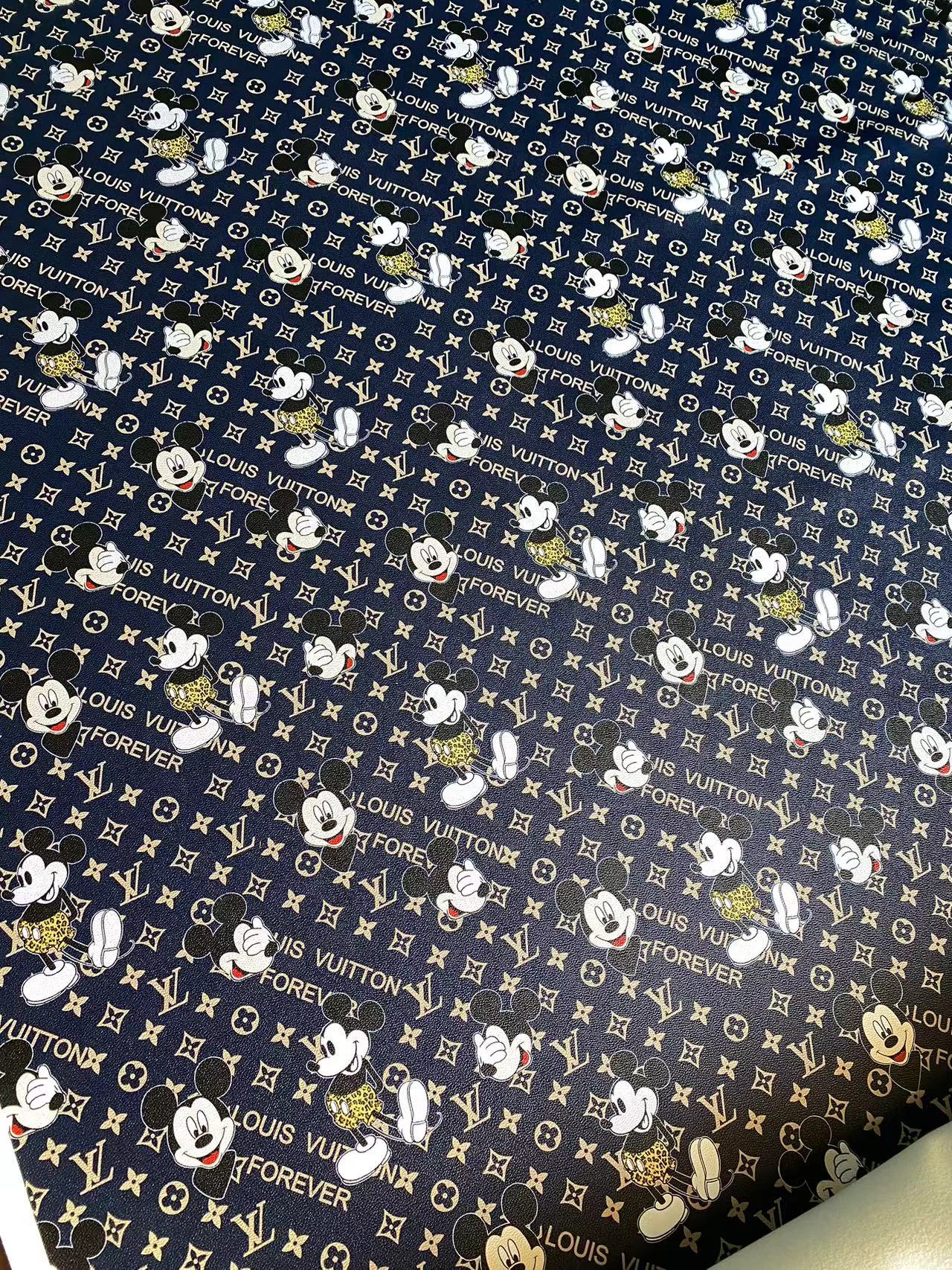 This Mickey Mouse Cartoon Louis Vuitton Faux Leather is perfect for custom bags and sneakers. Made with high-quality materials, it adds a touch of fun and luxury to any accessory.