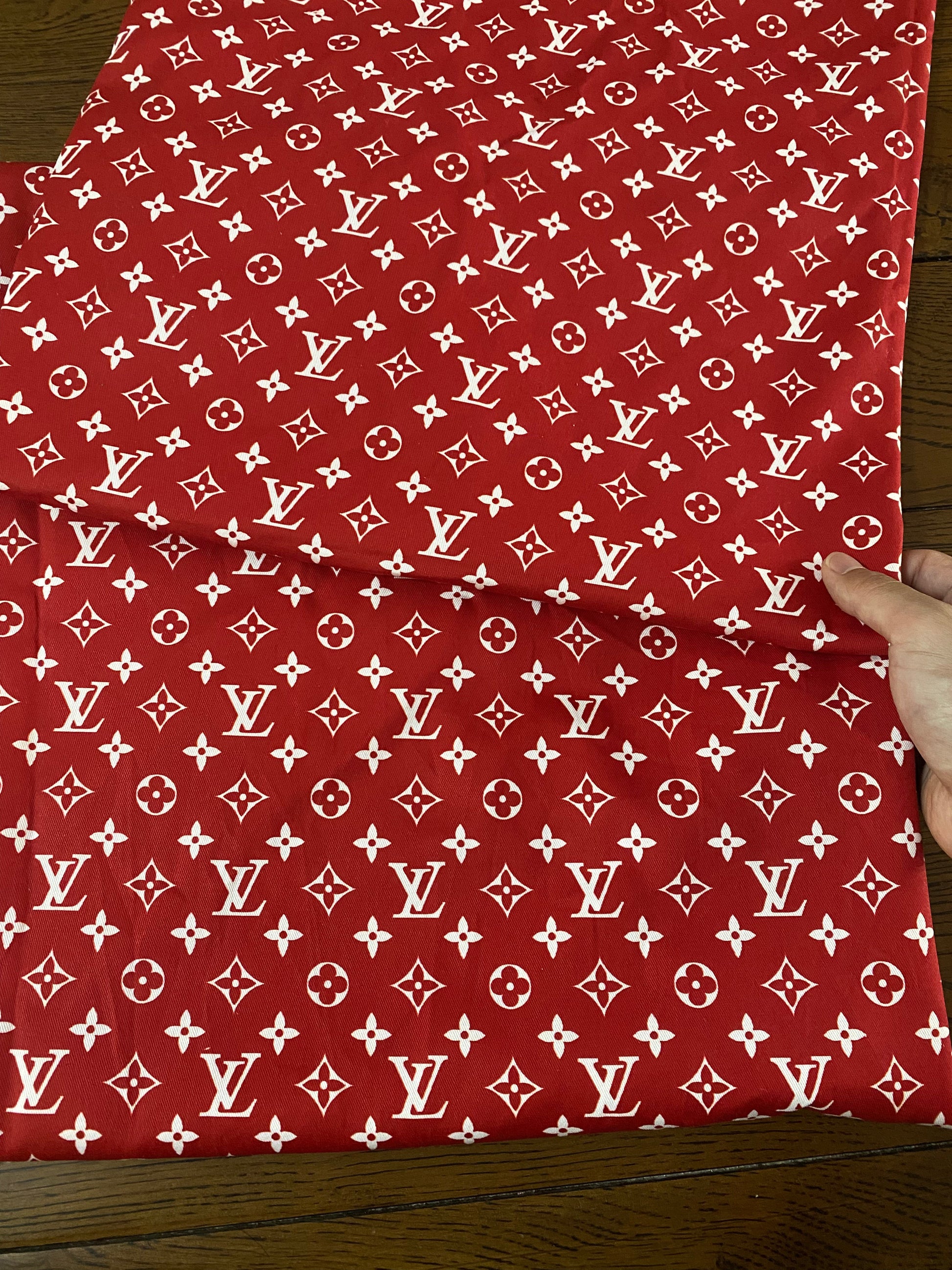 Red White Louis Vuitton Monogram Designer Shirt Fabric for Custom Handmade DIY