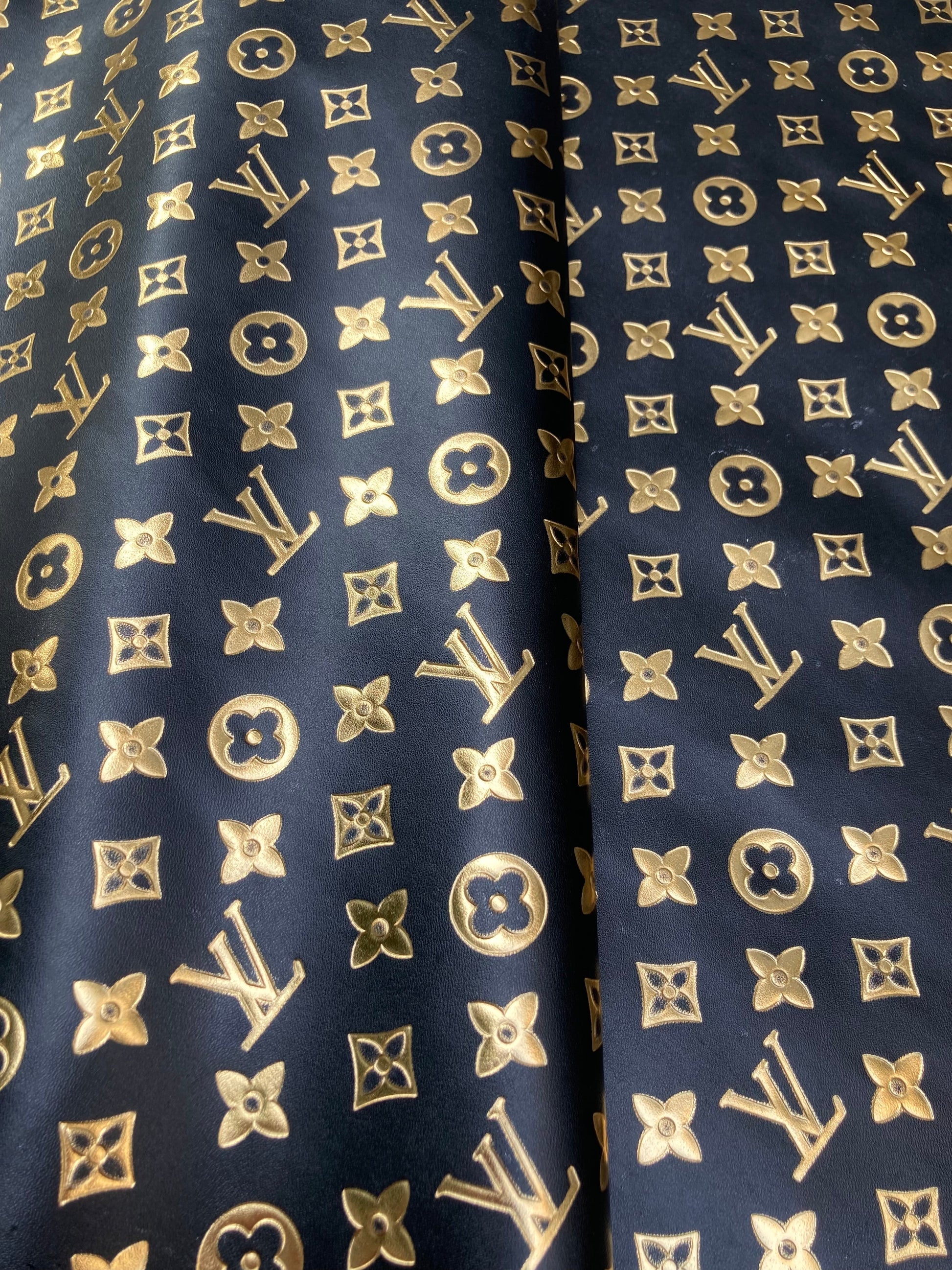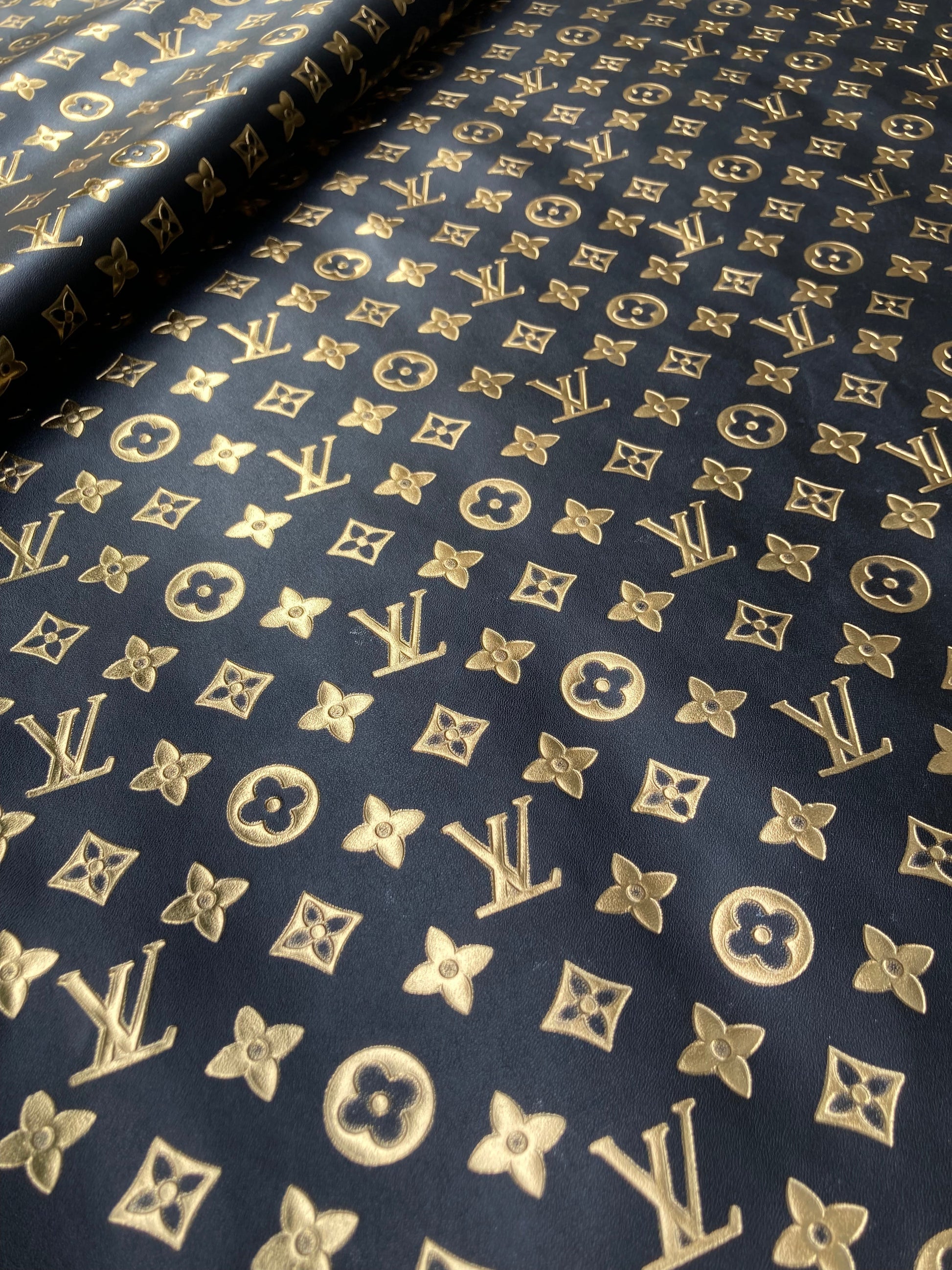 Premium Golden Embossed LV Soft Leather for Custom Sewing DIY