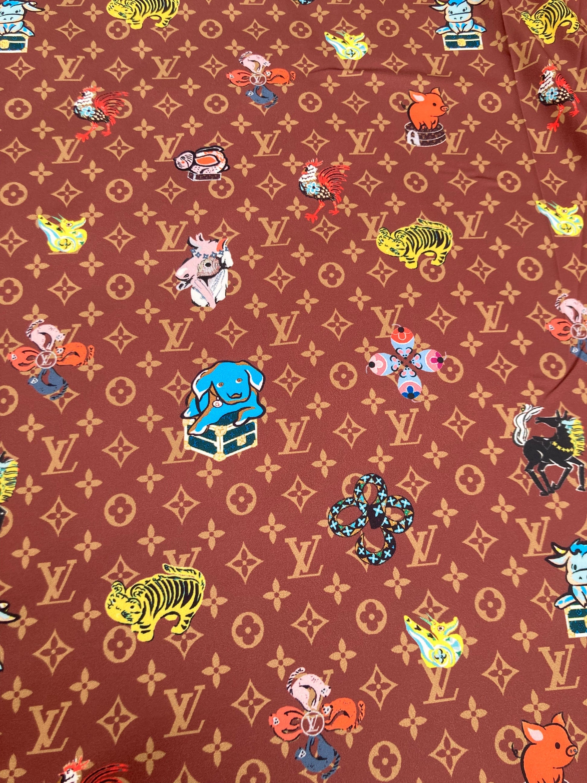 Classic LV Satin Fabric for Sewing Handmade DIY Bag Lining Pajama Fabric Sold by Yard